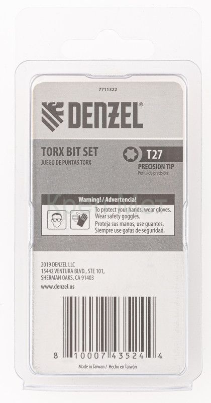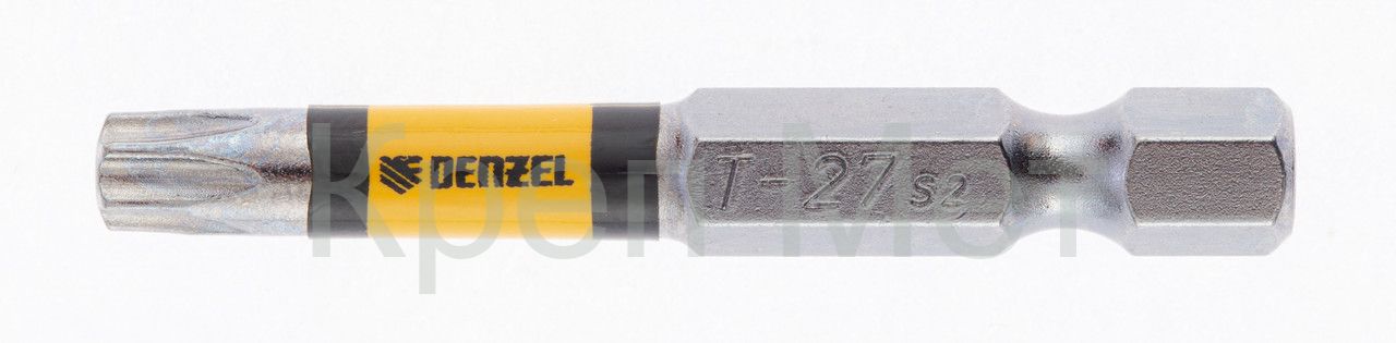 - Защита от подделок — цветное кольцо с логотипом ТМ Denzel на каждой бите подтверждает оригинальность товара.
