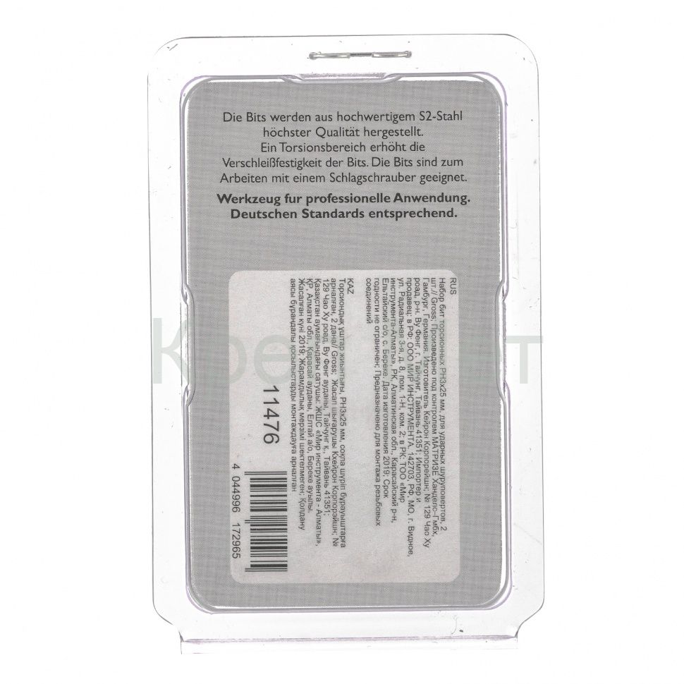 Набор торсионных бит PH3 x 25 мм Gross 11476, 2 шт., предназначен для монтажа и демонтажа резьбовых соединений с помощью ударного шуруповерта. Он незаменим в строительных, слесарных и монтажных работах, в автосервисах, при проведении ремонта в доме. Торсионная зона способна пружинить, за счет чего она частично амортизирует тангенциальный удар от шуруповерта. Такое решение позволяет равномерно распределить нагрузку по бите и избежать поломки шлица.