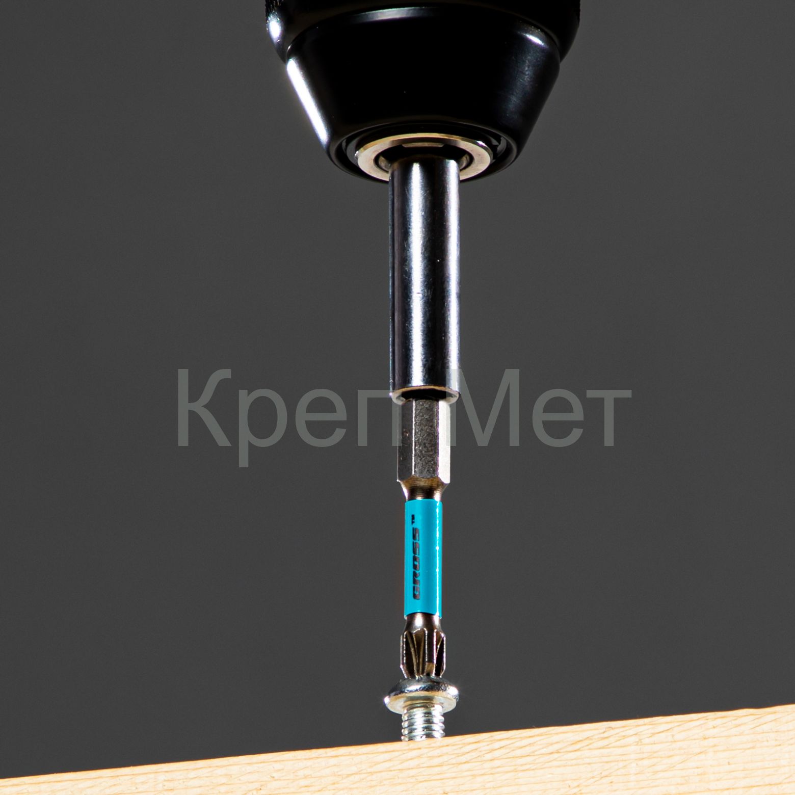 - Продуманная конструкция — торсионная зона позволяет работать ударным шуруповертом даже с особо твердыми поверхностями без риска поломки бит.