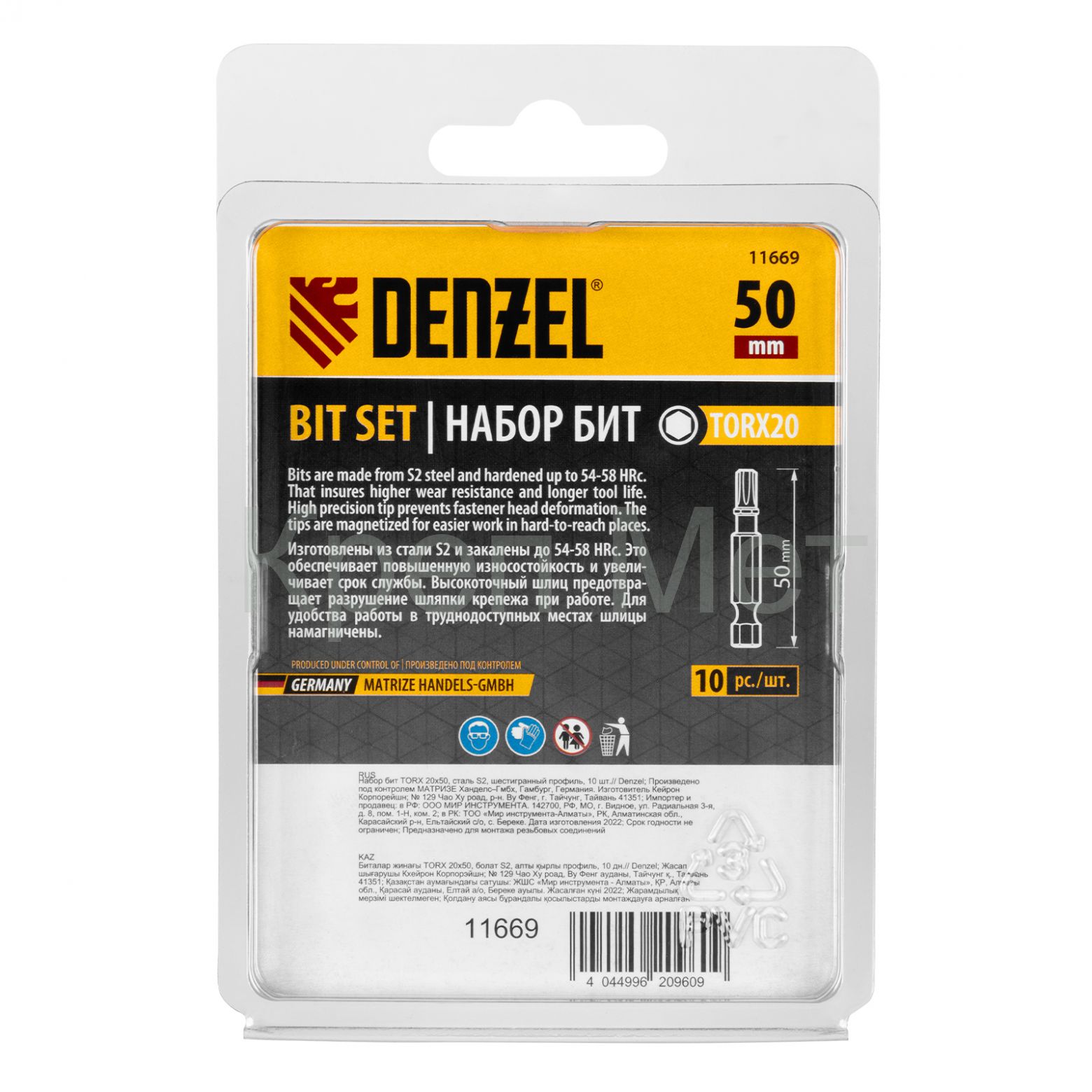 Набор бит TORX 20 х 50 мм Denzel 11669 включает в себя 10 насадок с хвостовиком 1/4", из стали S2, для работы с шуруповертами. Шлиц в форме звезды служит для быстрого монтажа и демонтажа винтов при сборке бытовой техники и электроприборов. Набор универсален и подходит как для бытового, так и для профессионального применения. Благодаря конструктивной особенности лучи «звезды» надежно сцепляются с крепежом, нагрузка равномерно распределяется на все грани, это снижает риск соскальзывания биты и обеспечивает высокую точность работ.