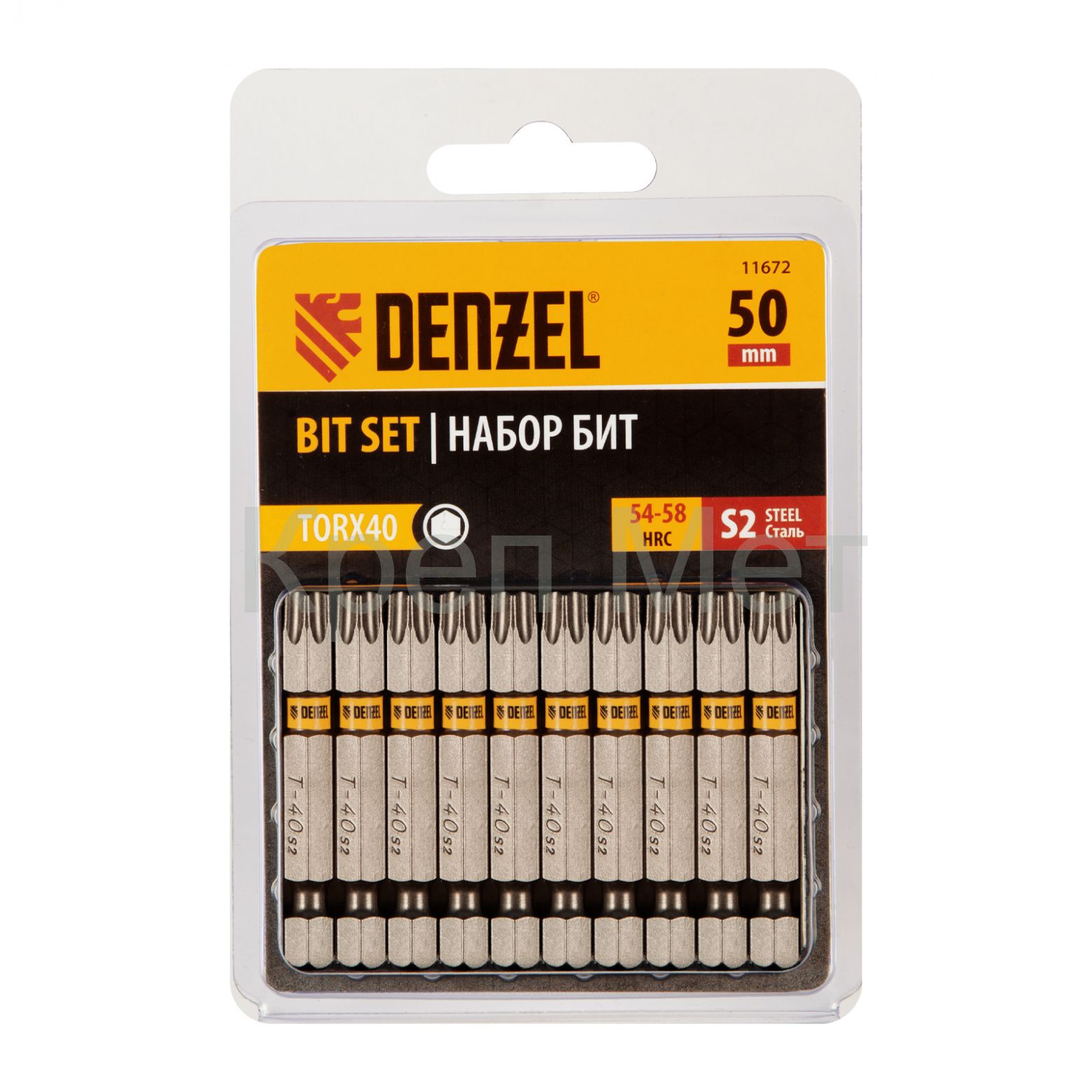 - Бита TX 40х50, сталь S2, шестигранный профиль, 10 шт. Е 6,3 Denzel