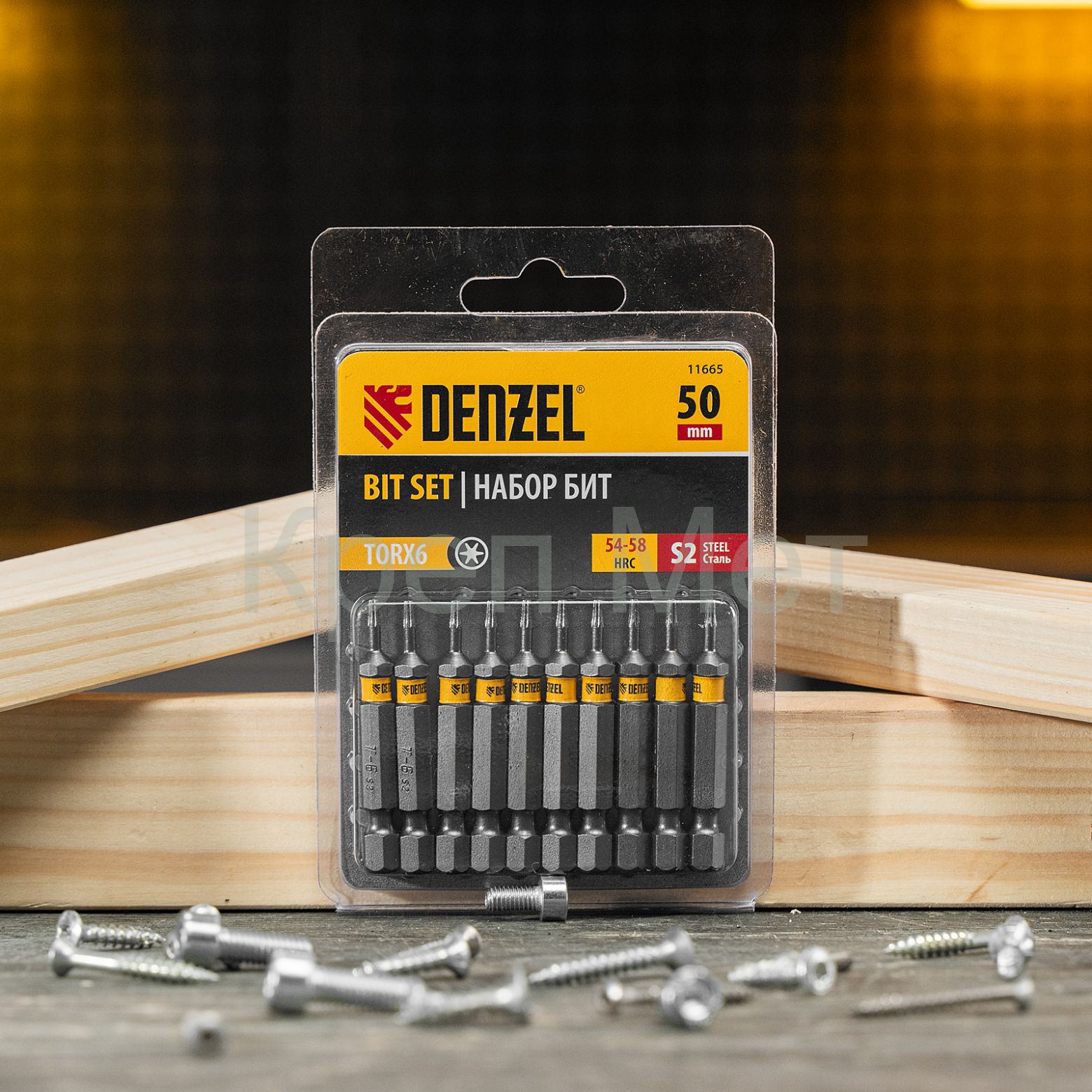 - Бита TX 6х50, сталь S2, шестигранный профиль, 10 шт. Е 6,3 Denzel