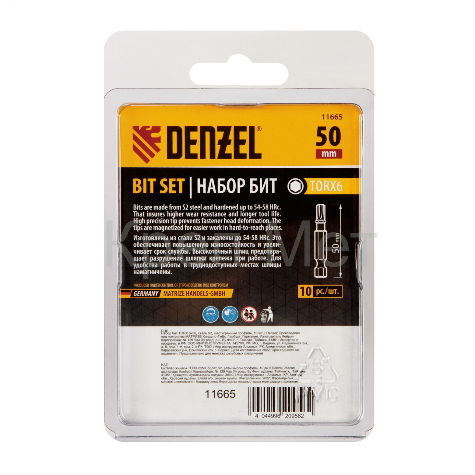 Набор бит TORX 6 х 50 мм Denzel 11665 включает в себя 10 насадок с хвостовиком 1/4", из стали S2, для работы с шуруповертами. Шлиц в форме звезды служит для быстрого монтажа и демонтажа винтов при сборке бытовой техники и электроприборов. Набор универсален и подходит как для бытового, так и для профессионального применения. Благодаря конструктивной особенности лучи «звезды» надежно сцепляются с крепежом, нагрузка равномерно распределяется на все грани, это снижает риск соскальзывания биты и обеспечивает высокую точность работ.