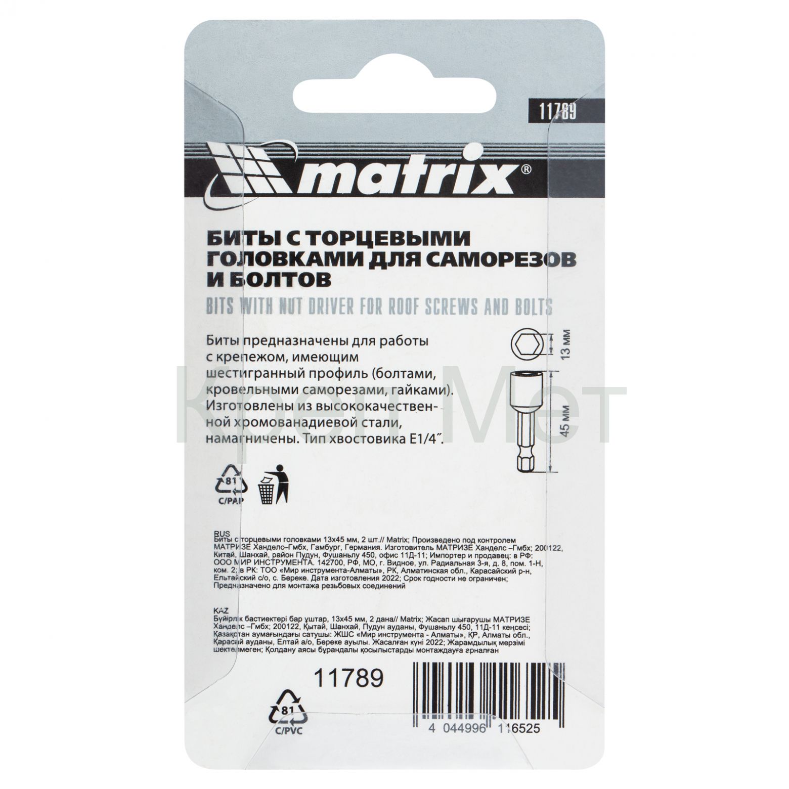 - Биты с торцевыми головками 13 мм, 45 мм, 2 шт. Matrix