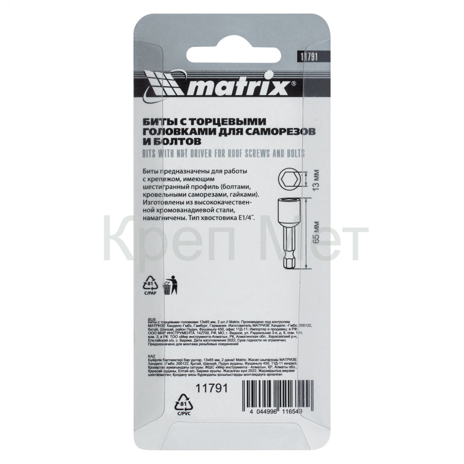 - Биты с торцевыми головками 13 мм, 65 мм, 2 шт. Matrix
