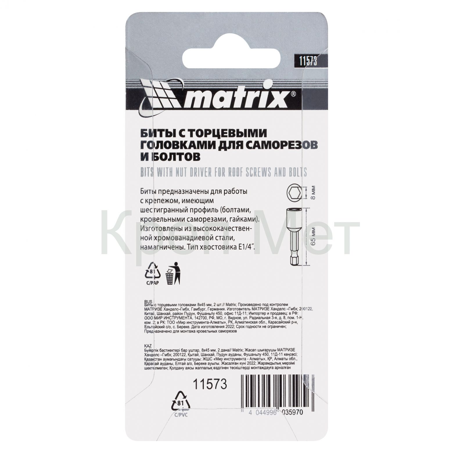 - Биты с торцевыми головками 8 мм, 65 мм, 2 шт. Matrix