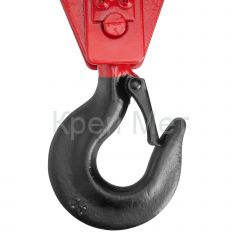 - Безопасная работа — кованая предохранительная защелка на крюке обеспечивает надежную фиксацию груза.