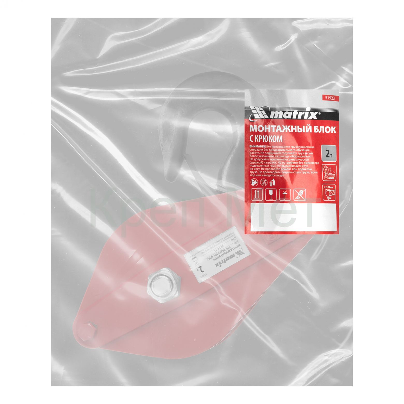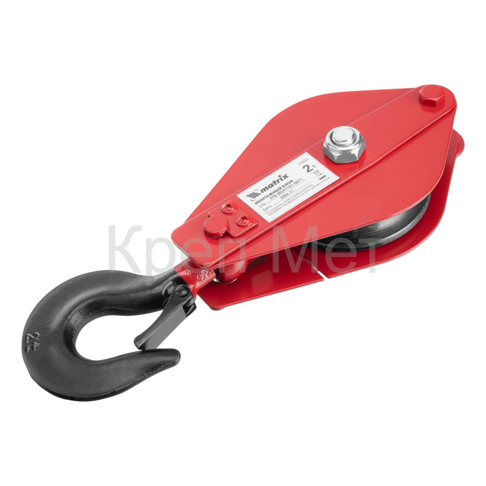 Монтажный блок Matrix 51923 с крюком, грузоподъемностью 2 т, расширяет функциональные возможности ручного и электрического грузоподъемного оборудования. Позволяет менять направление движения груза, а также увеличивает подъемную силу.