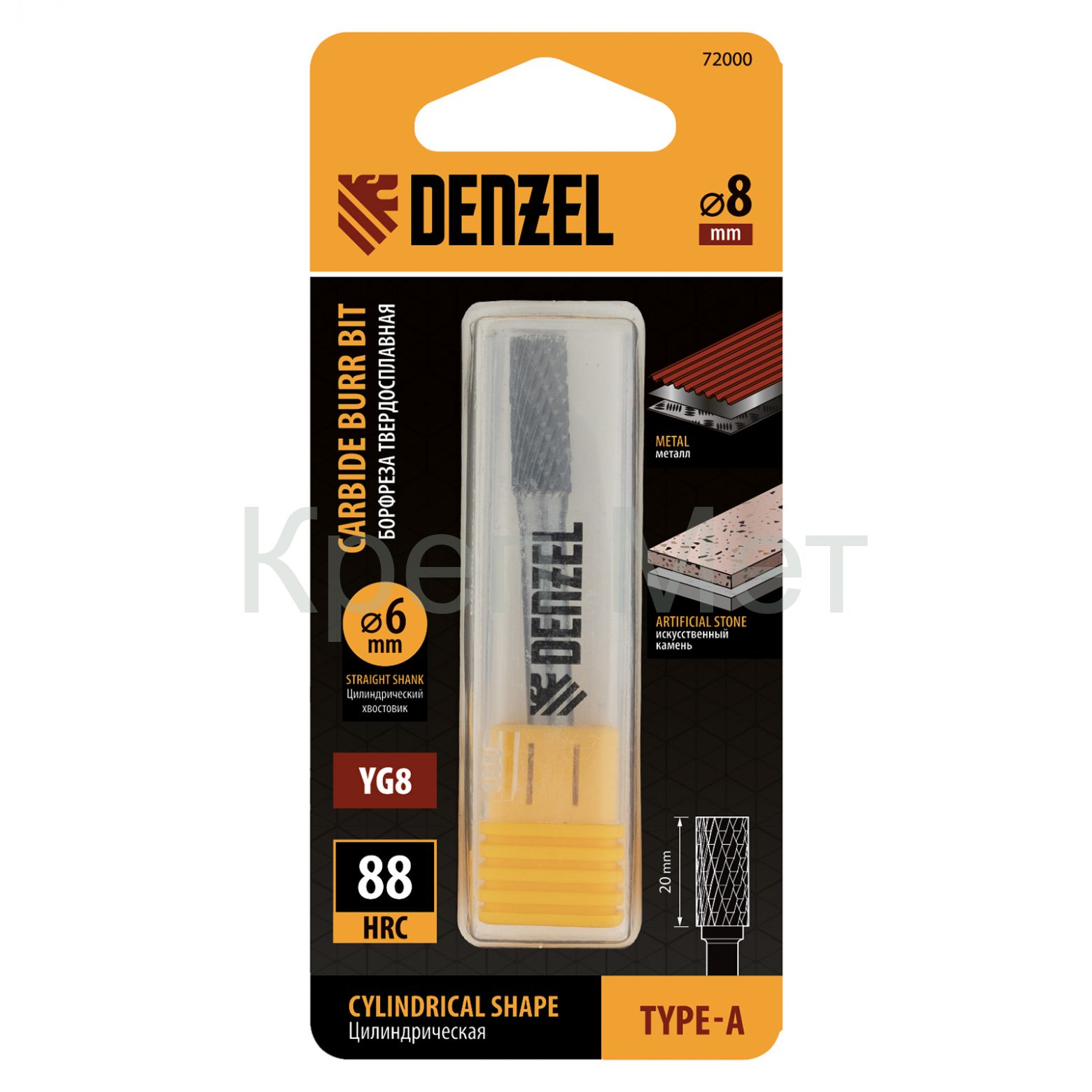 Борфреза по металлу твердосплавная, цилиндрическая, тип-А, 8 мм Denzel