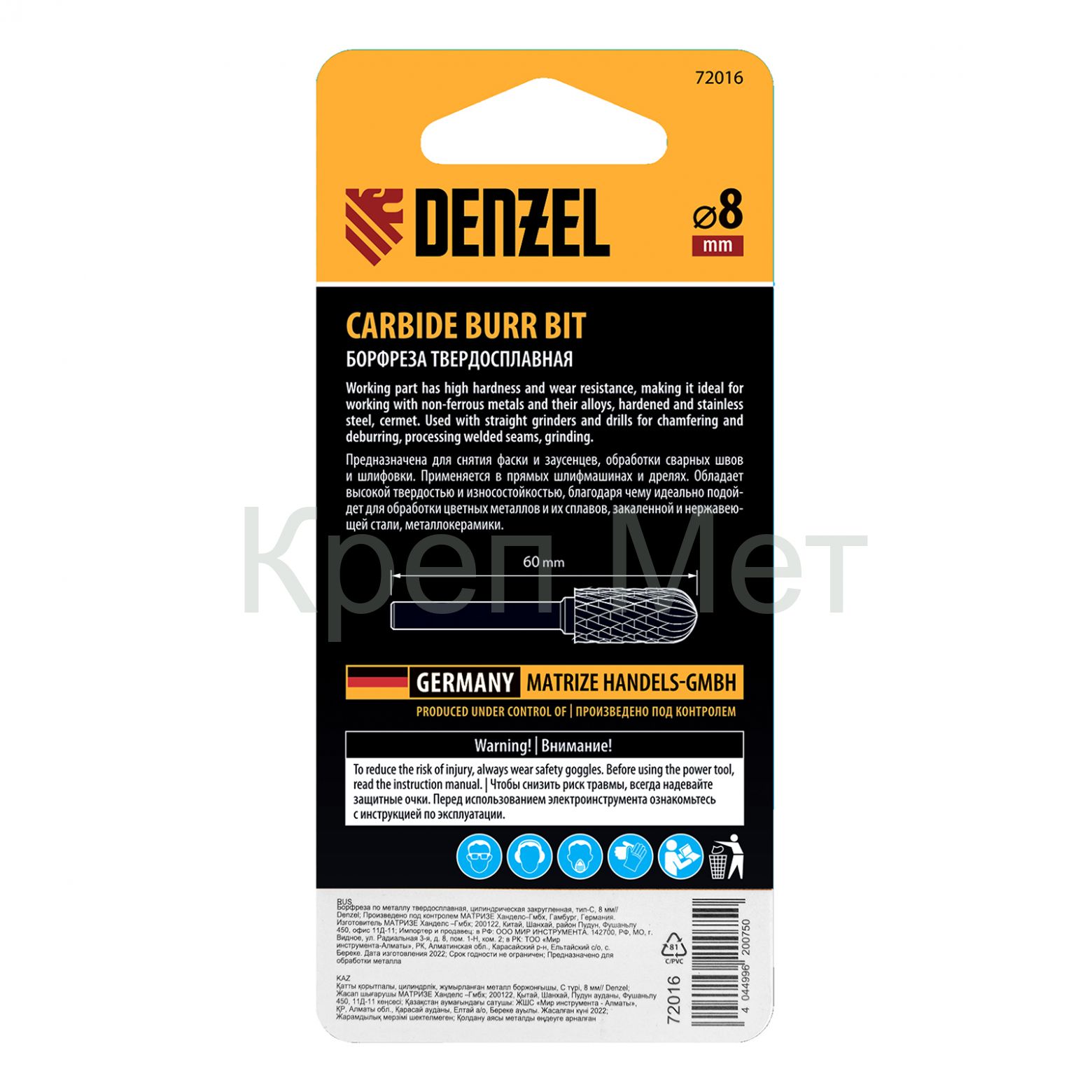 - Борфреза по металлу твердосплавная, цилиндрическая закругленная, тип-С, 8 мм Denzel