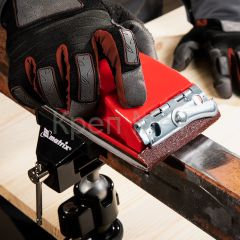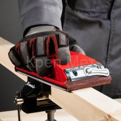 - Простая подготовка к работе — быстрозажимной механизм позволяет надежно зафиксировать шлифовальный материал.