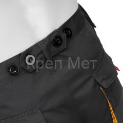 Рабочие брюки Denzel 90382 размера M рассчитаны на рост 173-179 см и используются для выполнения профессиональных строительных, ремонтных, сантехнических и производственных работ в теплое время года или в отапливаемом помещении. Защищают пользователя от общих производственных загрязнений, нетоксичной пыли, ветра и незначительных механических воздействий. Изготовлены из ткани плотностью 260 г/м² (65% полиэстер, 35% хлопок). За счет наличия хлопковых волокон в составе ткань хорошо пропускает воздух и приятна на теле, полиэстер обеспечивает устойчивость к истиранию. Брюки выполнены в практичном темно-сером цвете.