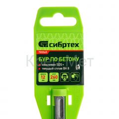 - Бур по бетону, 12 x 260 мм, SDS Plus Сибртех