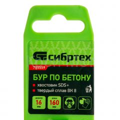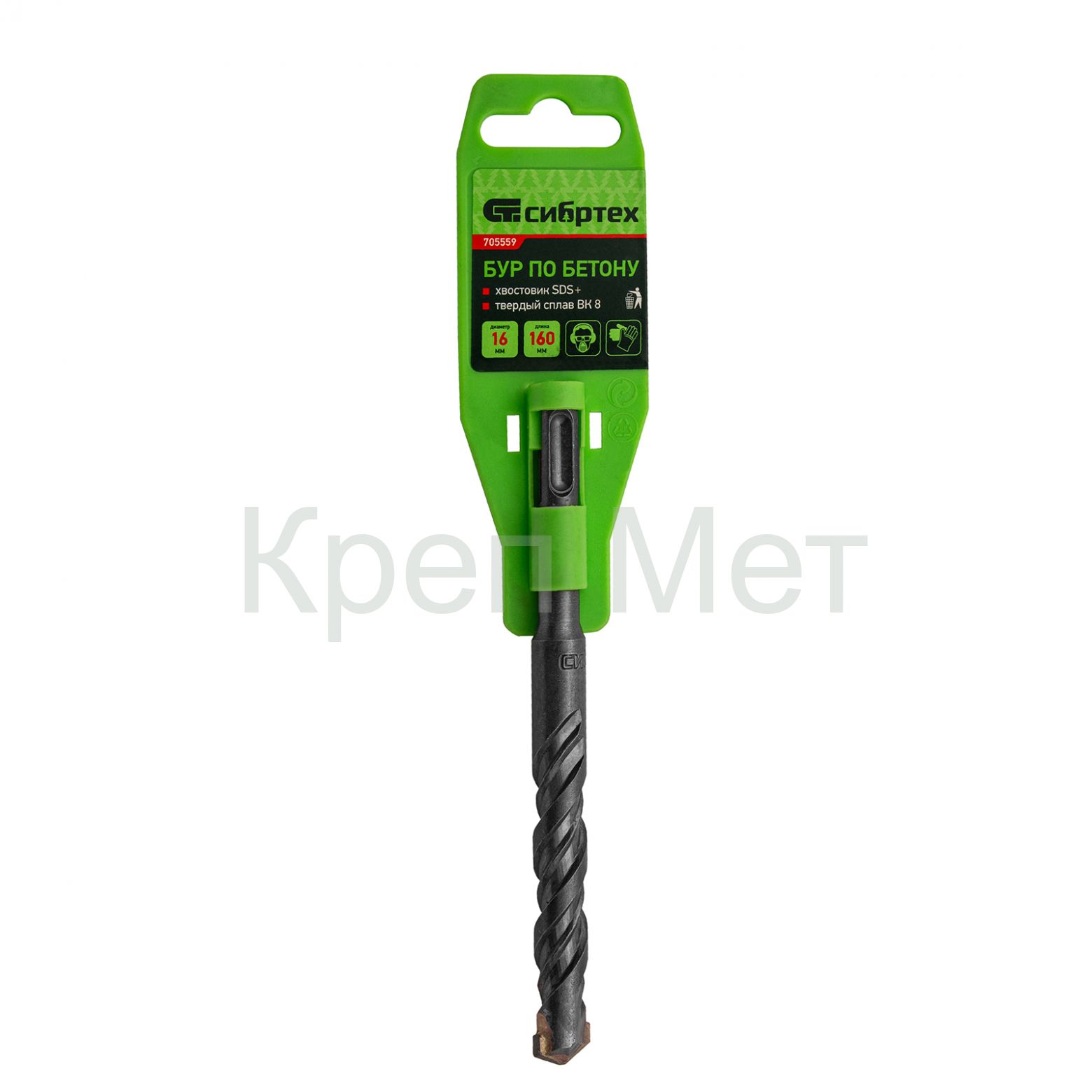 Бур по бетону, 16 х 160 мм, SDS Plus Сибртех