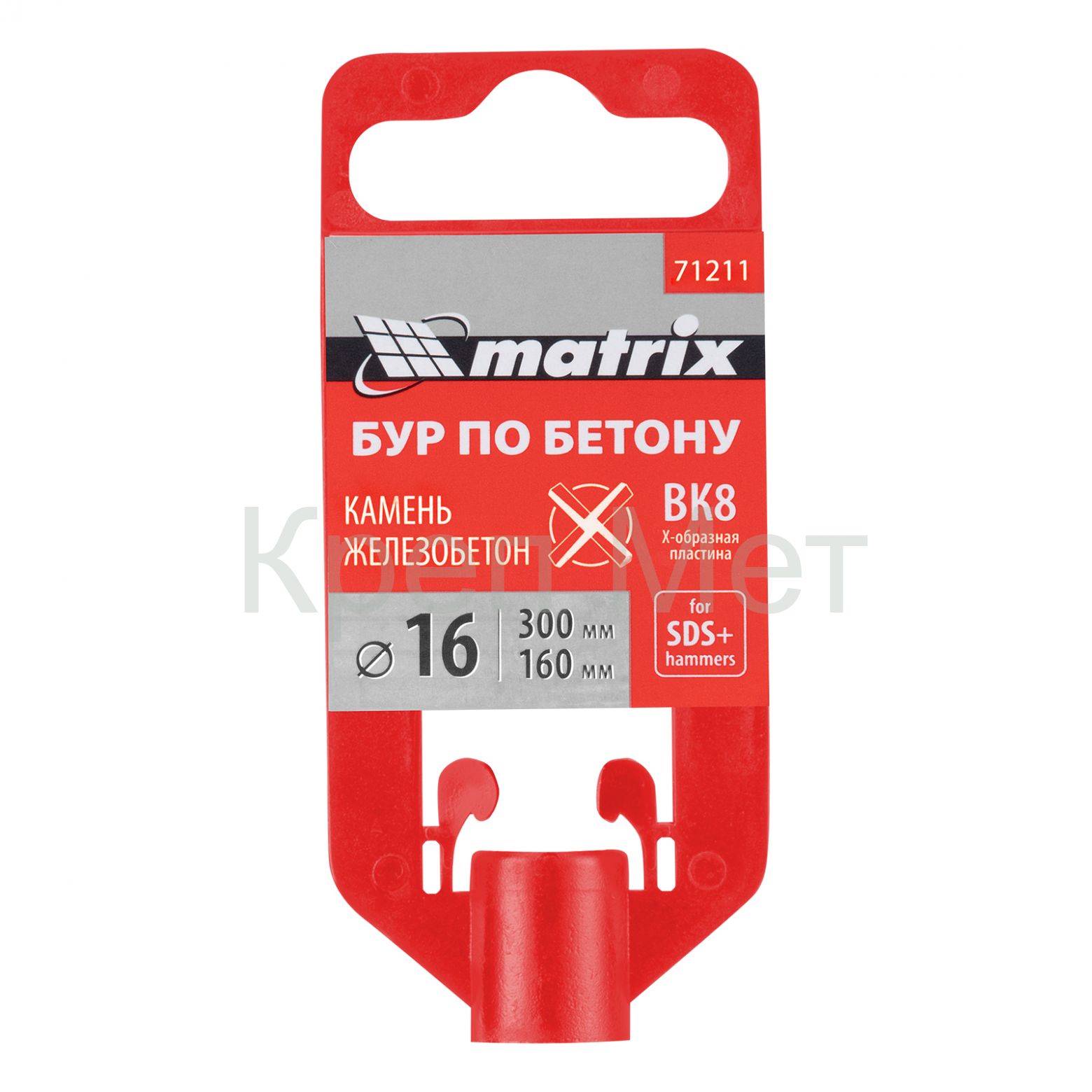 Бур по бетону Matrix 71211 размером 16 х 300 мм используется в качестве оснастки на тяжелых перфораторах с хвостовиком SDS MAX. Подходит для сверления глубоких отверстий в кирпиче и особо прочных материалах: армированном бетоне, природном и искусственном камне.