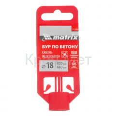 Бур по бетону Matrix 71269 размером 18 х 800 мм используется в качестве оснастки на тяжелых перфораторах с хвостовиком SDS MAX. Подходит для сверления глубоких отверстий в кирпиче и особо прочных материалах: армированном бетоне, природном и искусственном камне.