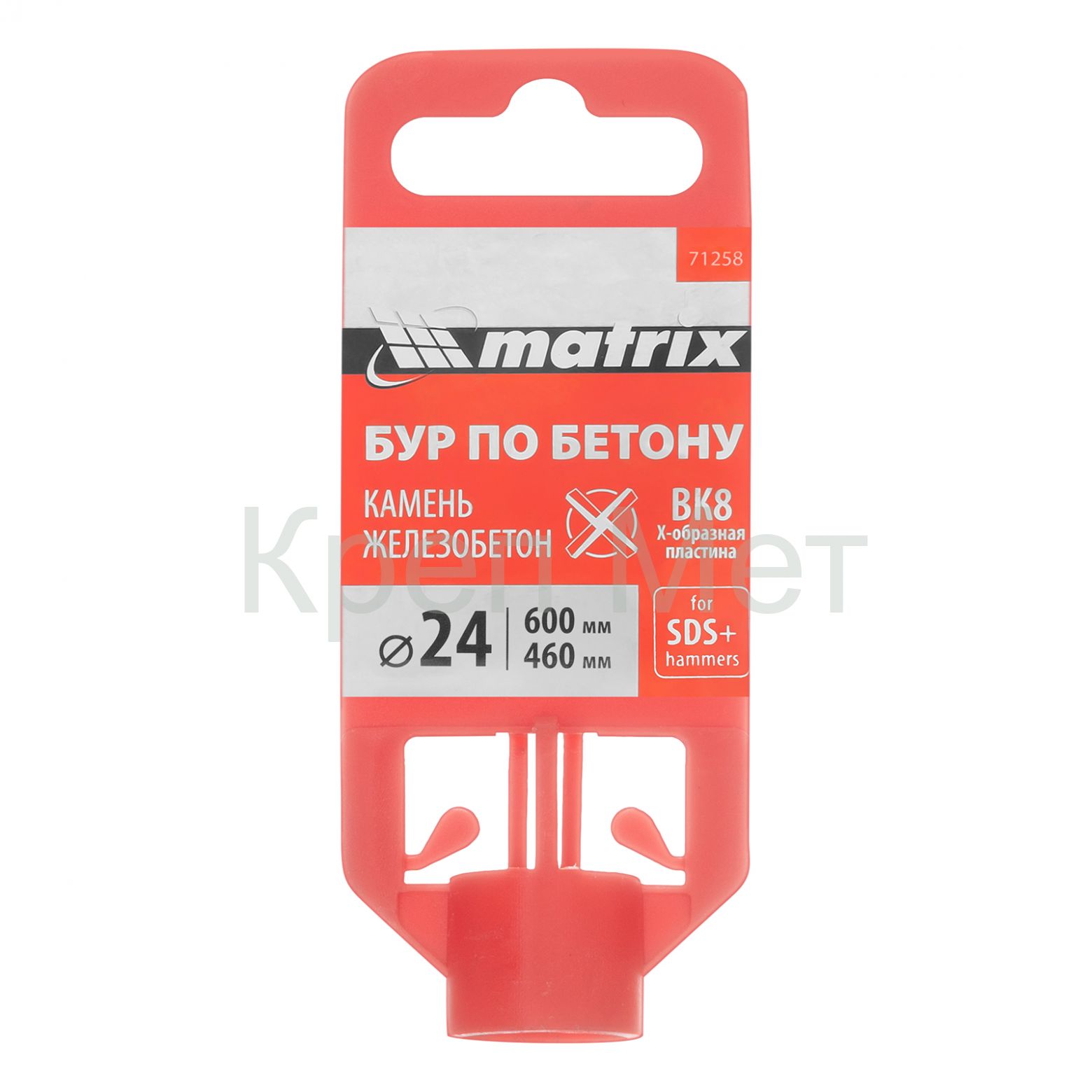 Бур по бетону Matrix 71258 размером 24 х 600 мм используется в качестве оснастки на тяжелых перфораторах с хвостовиком SDS MAX. Подходит для сверления глубоких отверстий в кирпиче и особо прочных материалах: армированном бетоне, природном и искусственном камне.