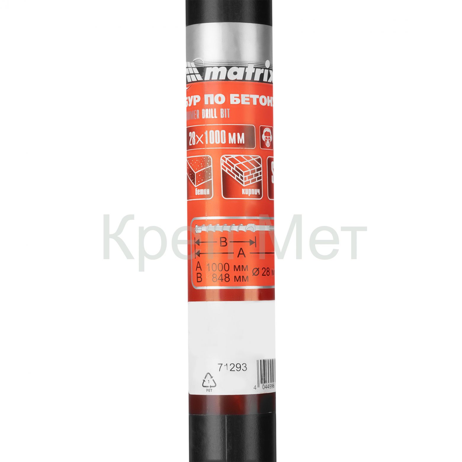 Бур по бетону Matrix 71293 размером 28 х 1000 мм используется в качестве оснастки на тяжелых перфораторах с хвостовиком SDS MAX. Подходит для сверления глубоких отверстий в кирпиче и особо прочных материалах: армированном бетоне, природном и искусственном камне.