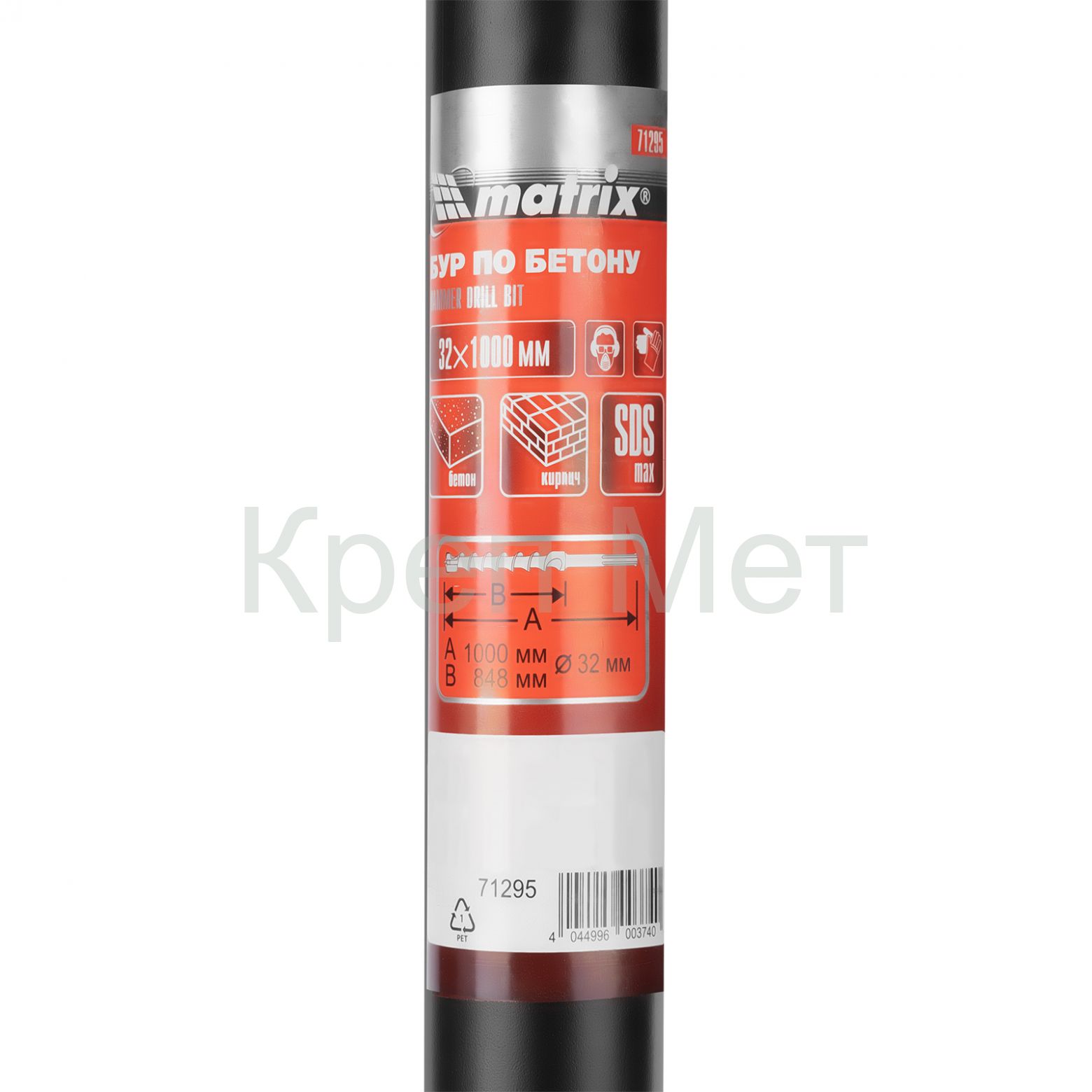 Бур по бетону Matrix 71295 размером 32 х 1000 мм используется в качестве оснастки на тяжелых перфораторах с хвостовиком SDS MAX. Подходит для сверления глубоких отверстий в кирпиче и особо прочных материалах: армированном бетоне, природном и искусственном камне.