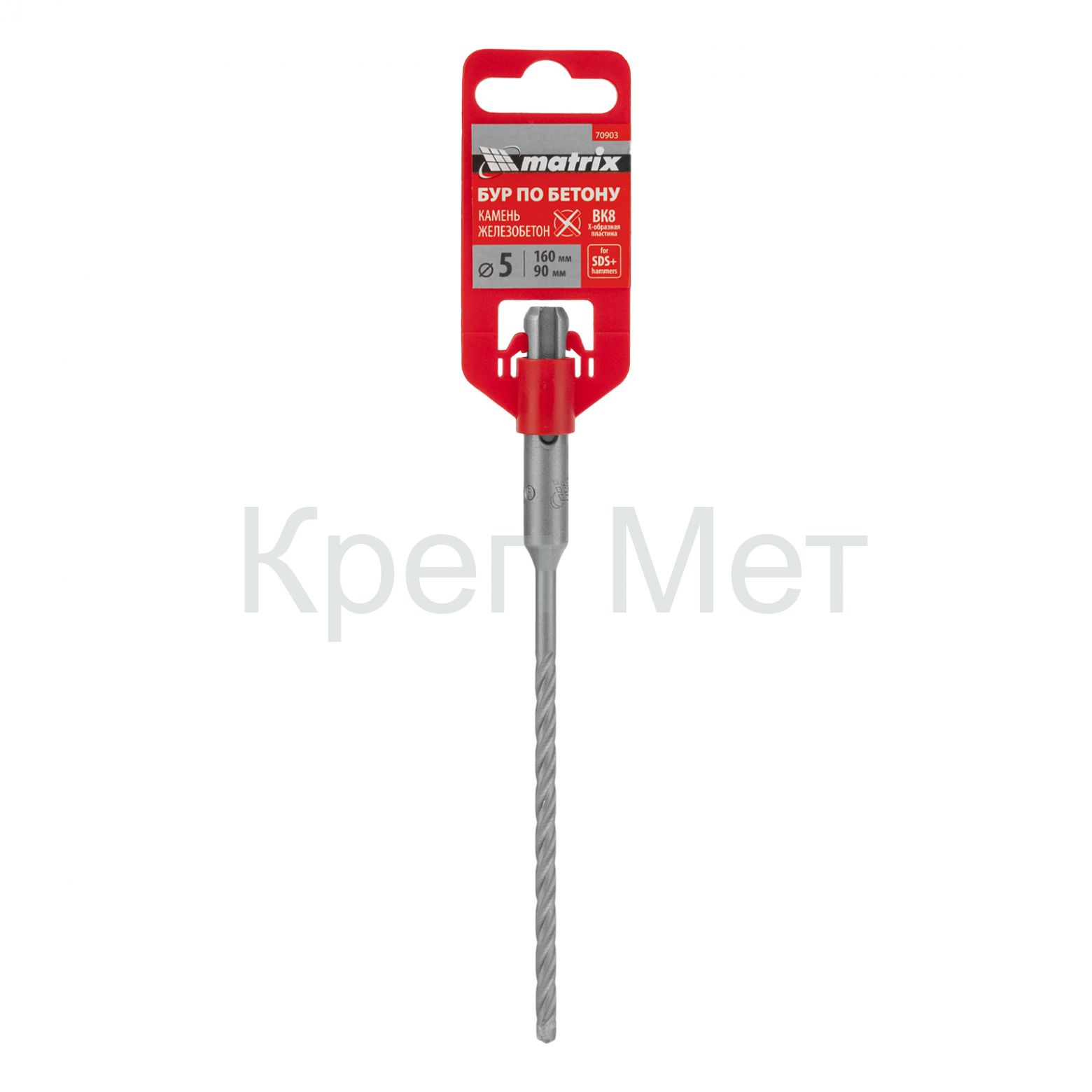 Бур по бетону Matrix 70903 длиной 160 мм, с хвостовиком SDS-plus и крестовой пластиной, предназначен для получения отверстий диаметром 5 мм в бетоне, камне и кирпиче. Крестовая пластина обеспечивает эффективную работу с твердыми материалами, в том числе армированным бетоном. Бур устанавливается в патрон перфоратора и используется во время проведения строительных работ.