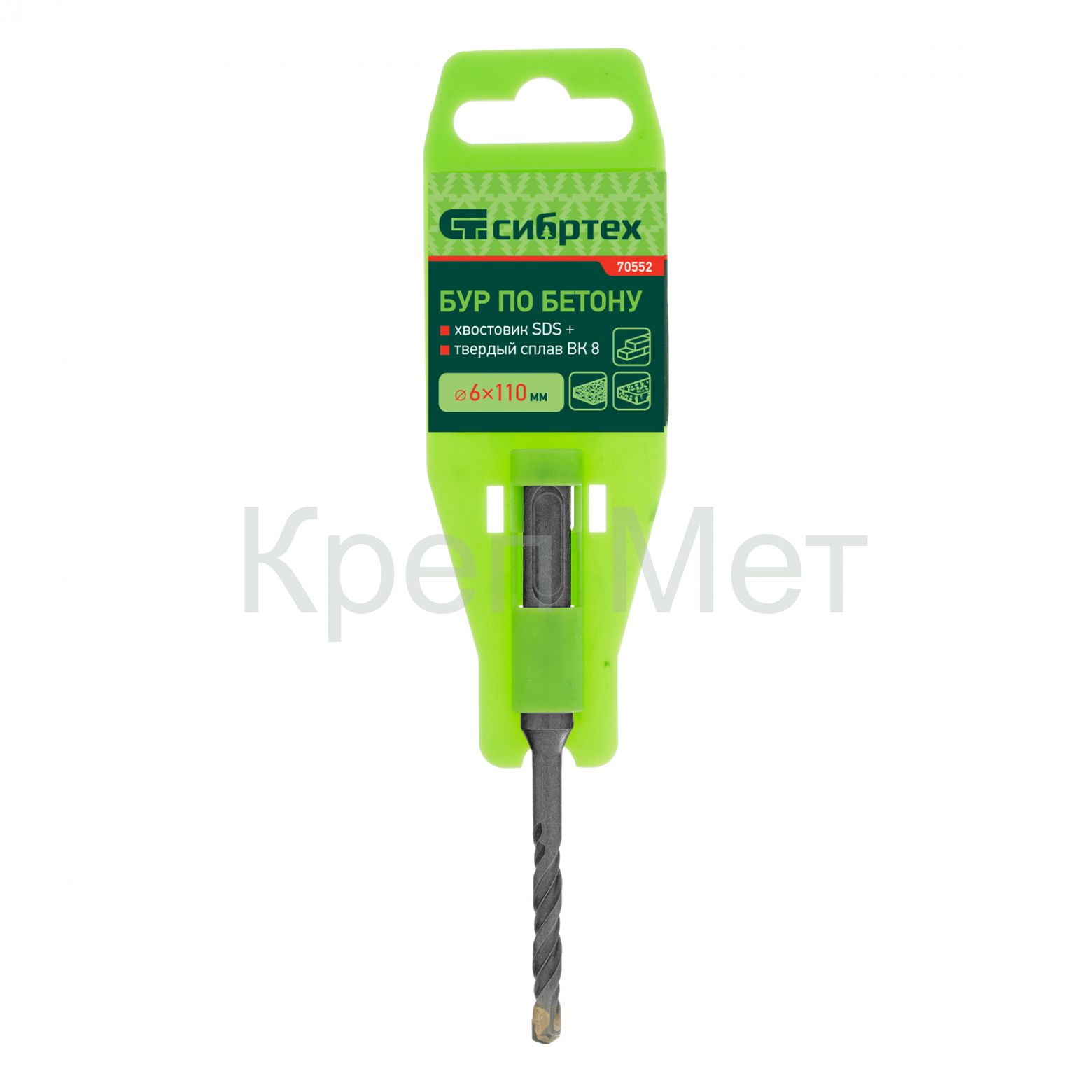 Бур по бетону, 6 x 110 мм, SDS Plus Сибртех