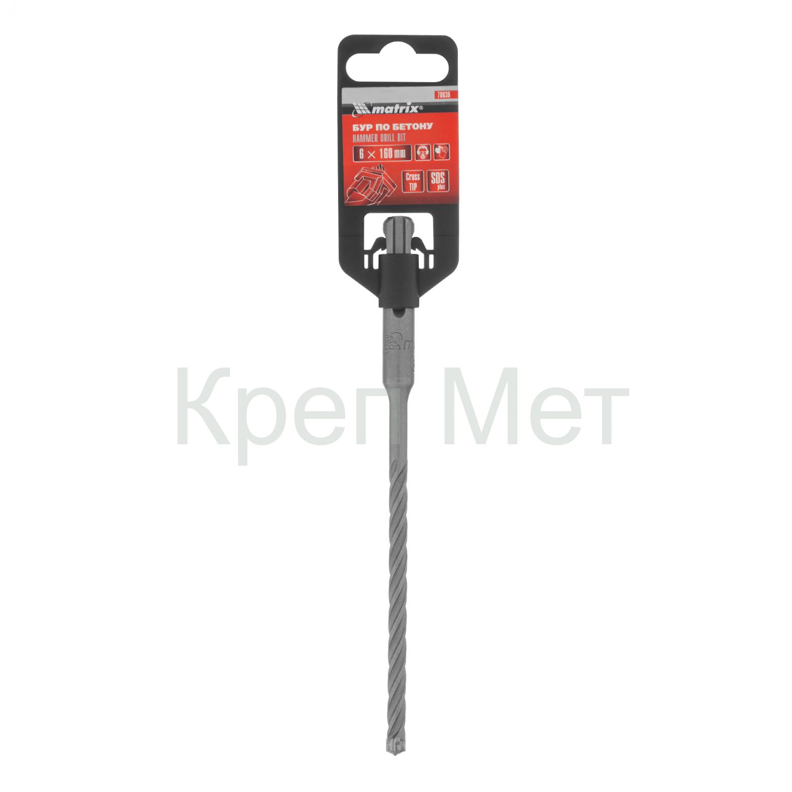 - Бур по бетону, 6 x 160 мм, SDS Plus c крестовой пластиной Matrix