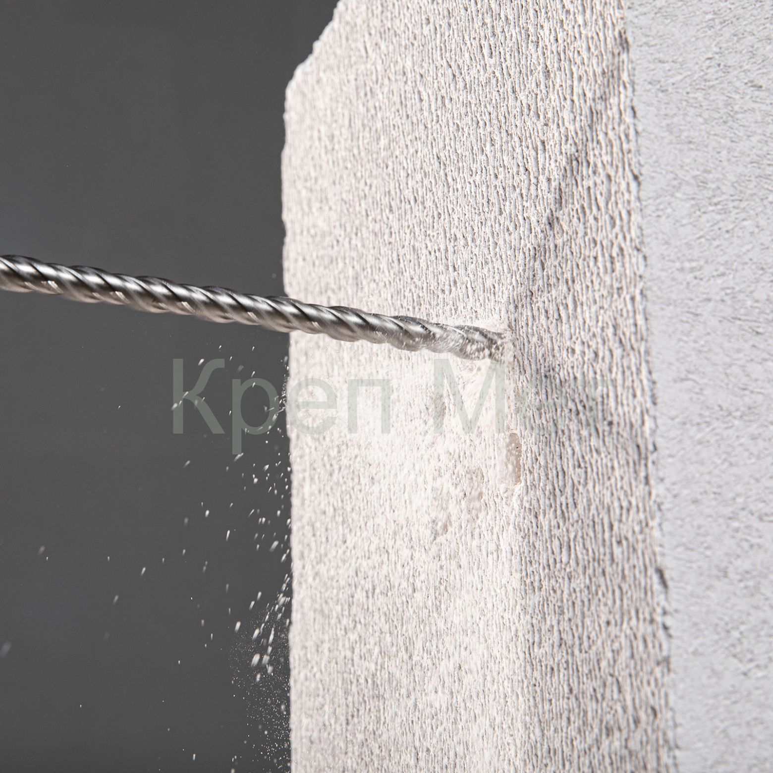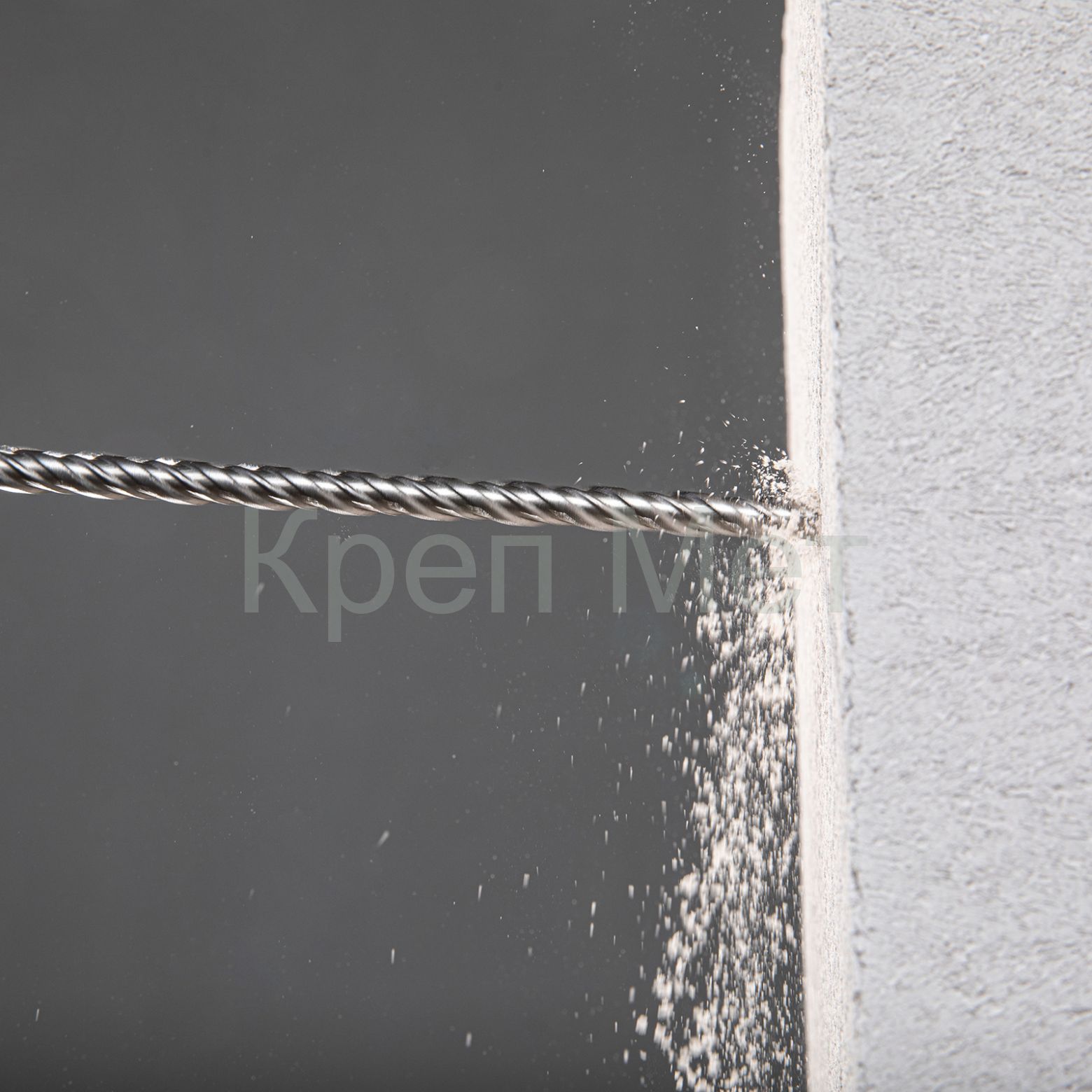 - Рабочая часть изготовлена из легированной стали 40Х с добавлением хрома, поэтому инструмент устойчив к высоким нагрузкам, возникающим при ударном сверлении.