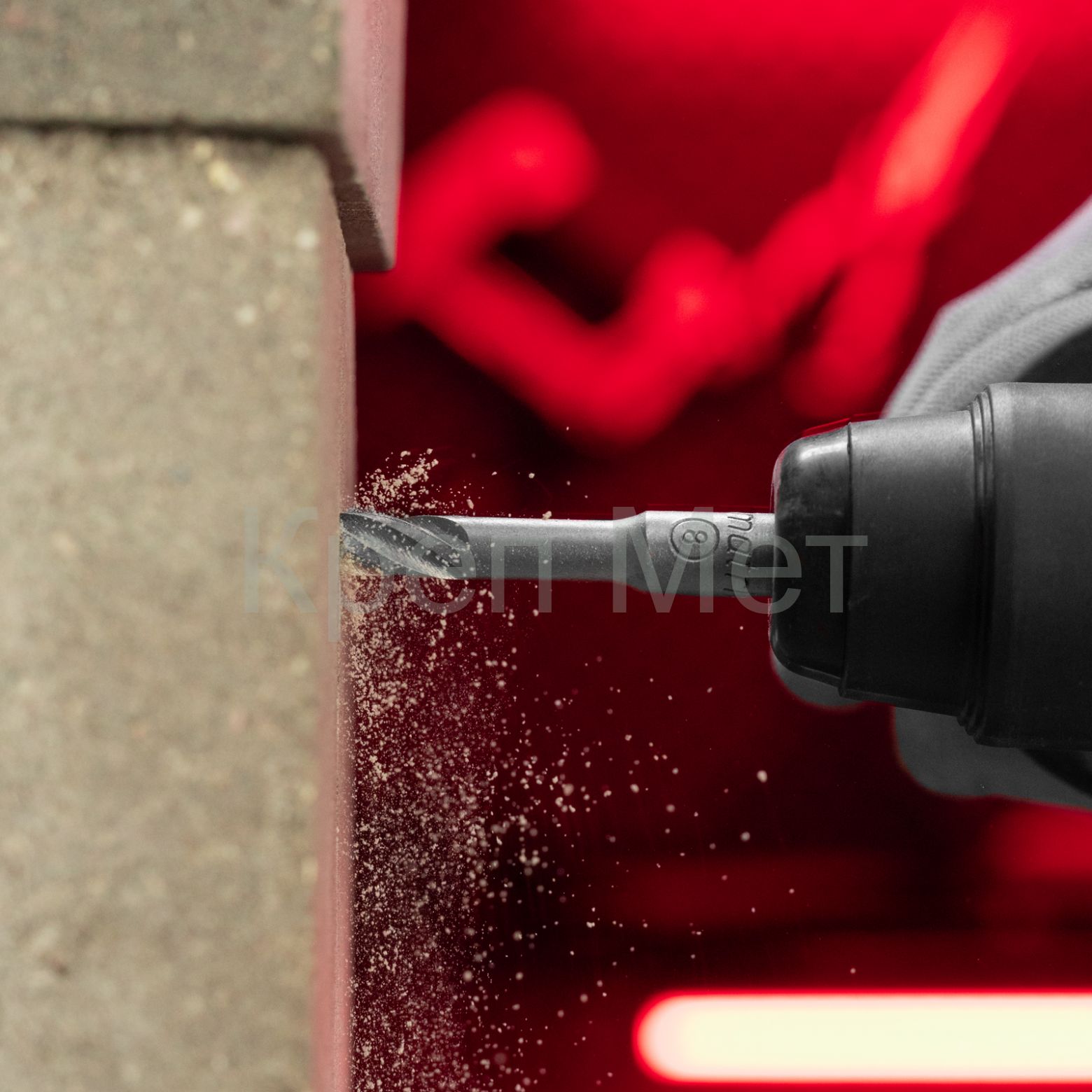 - Высокий ресурс — крестовая режущая пластина из сверхтвердого сплава карбида вольфрама 80–90 HRC долговечна, эффективно сверлит камень и не ломается при попадании в арматуру.