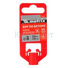 - Бур по бетону, 8 x 300 мм, SDS Plus c крестовой пластиной Matrix