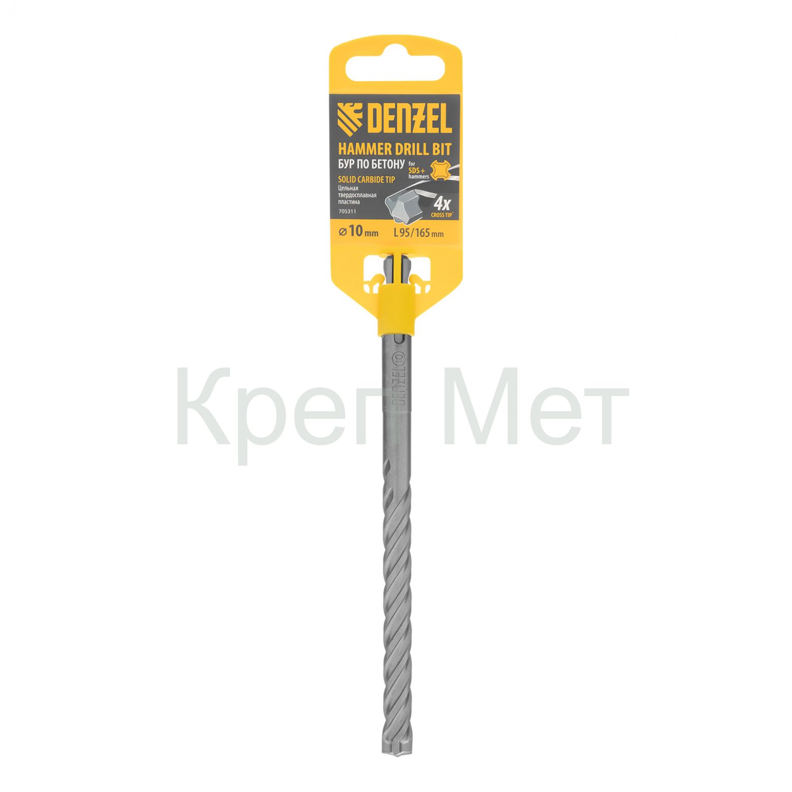 Бур по бетону, цельная крестовая пластина, 10x165 мм, SDS PLUS Denzel