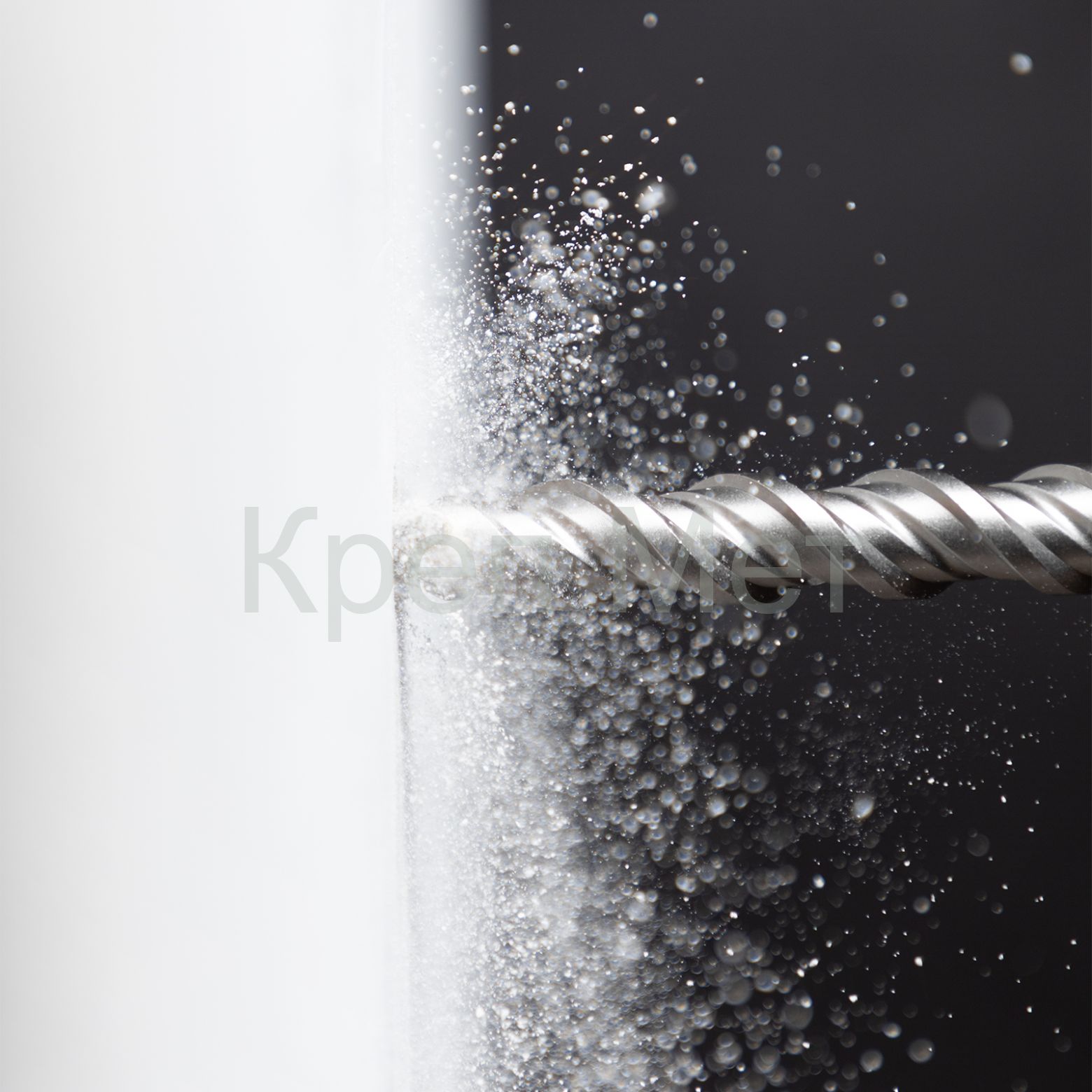 - Эффективный отвод шлама — двойная спираль и канавка с дополнительным желобом обеспечивают быстрое удаление пыли, что предотвращает перегрев рабочей части и продлевает срок службы бура.