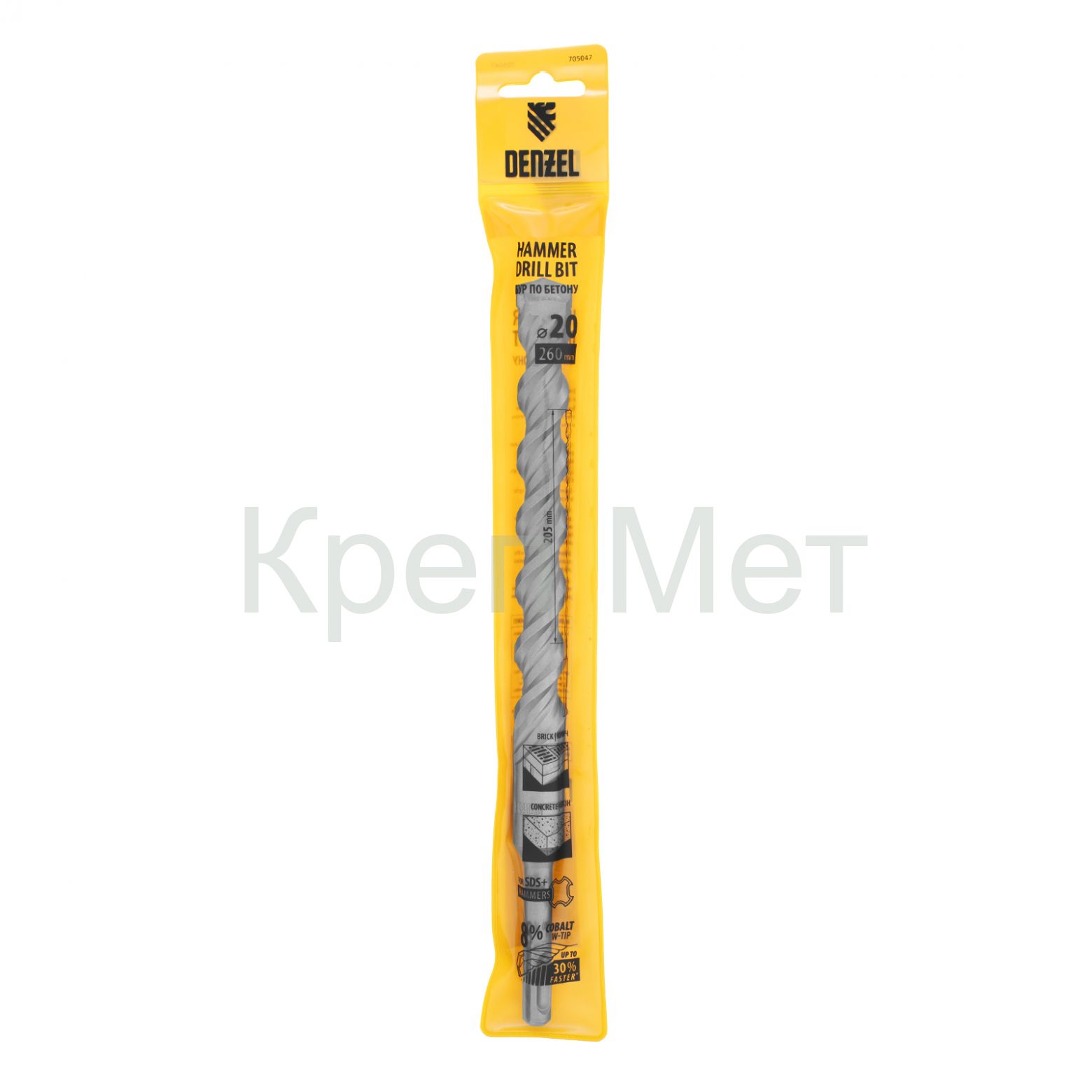 - Бур по бетону, двойная спираль, три пылеотводящие кромки, 20 x 260 мм DENZEL