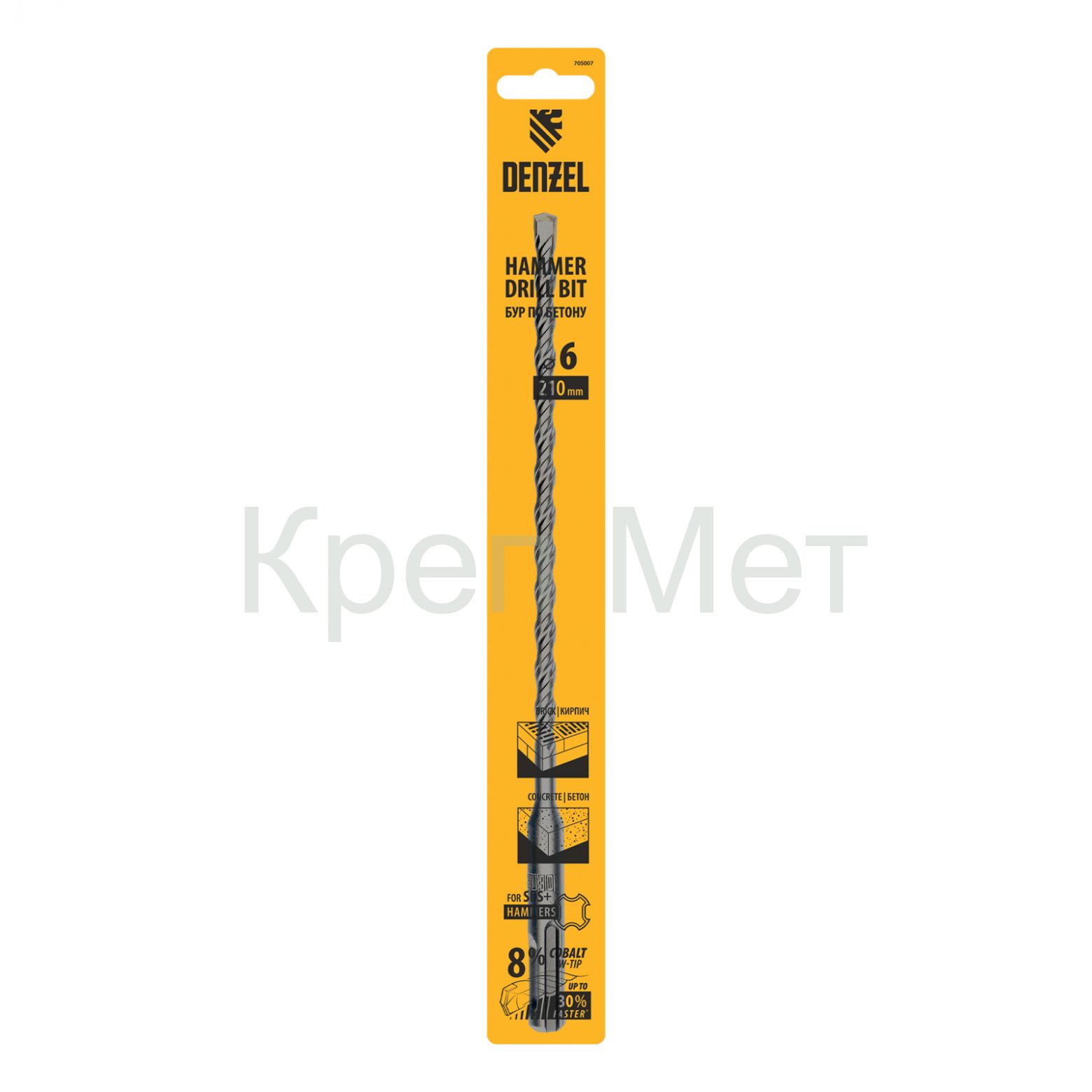 - Бур по бетону, двойная спираль, три пылеотводящие кромки, 6 x 210 мм DENZEL