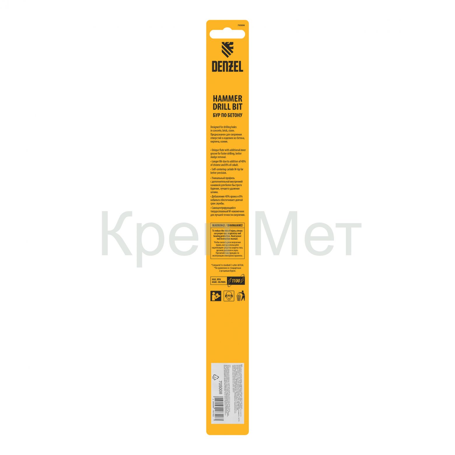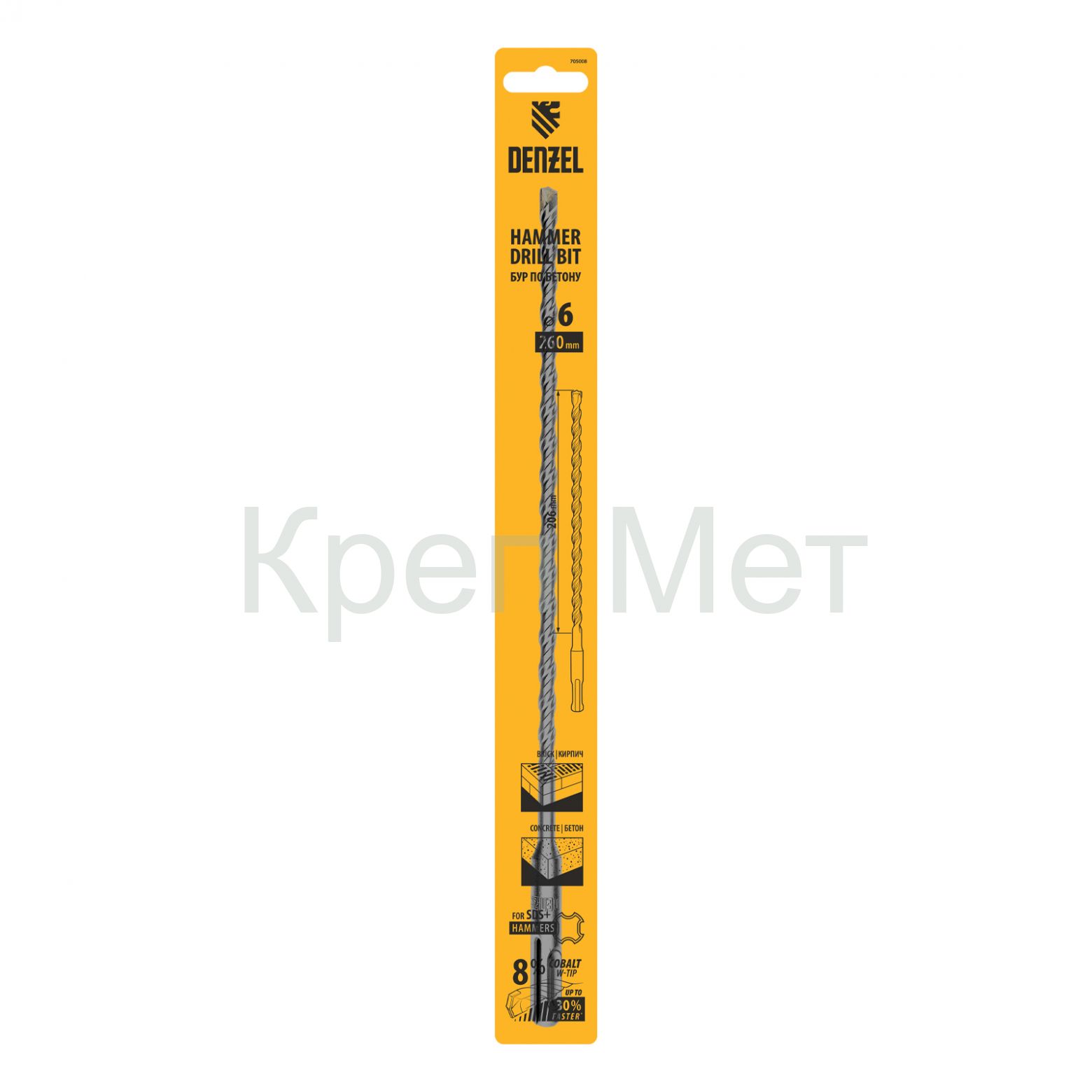 - Бур по бетону, двойная спираль, три пылеотводящие кромки, 6 x 260 мм DENZEL