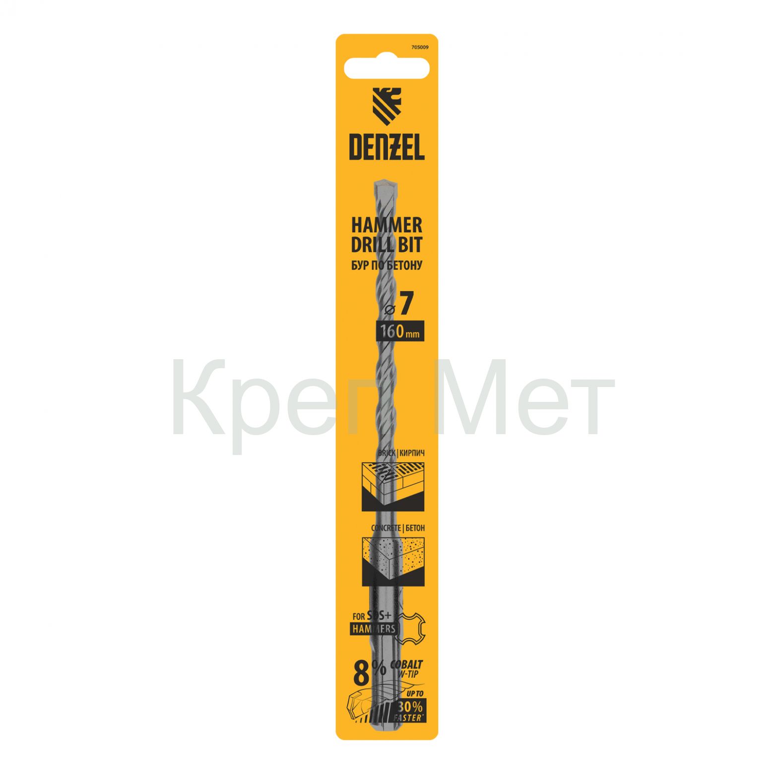 - Бур по бетону, двойная спираль, три пылеотводящие кромки, 7 x 160 мм DENZEL