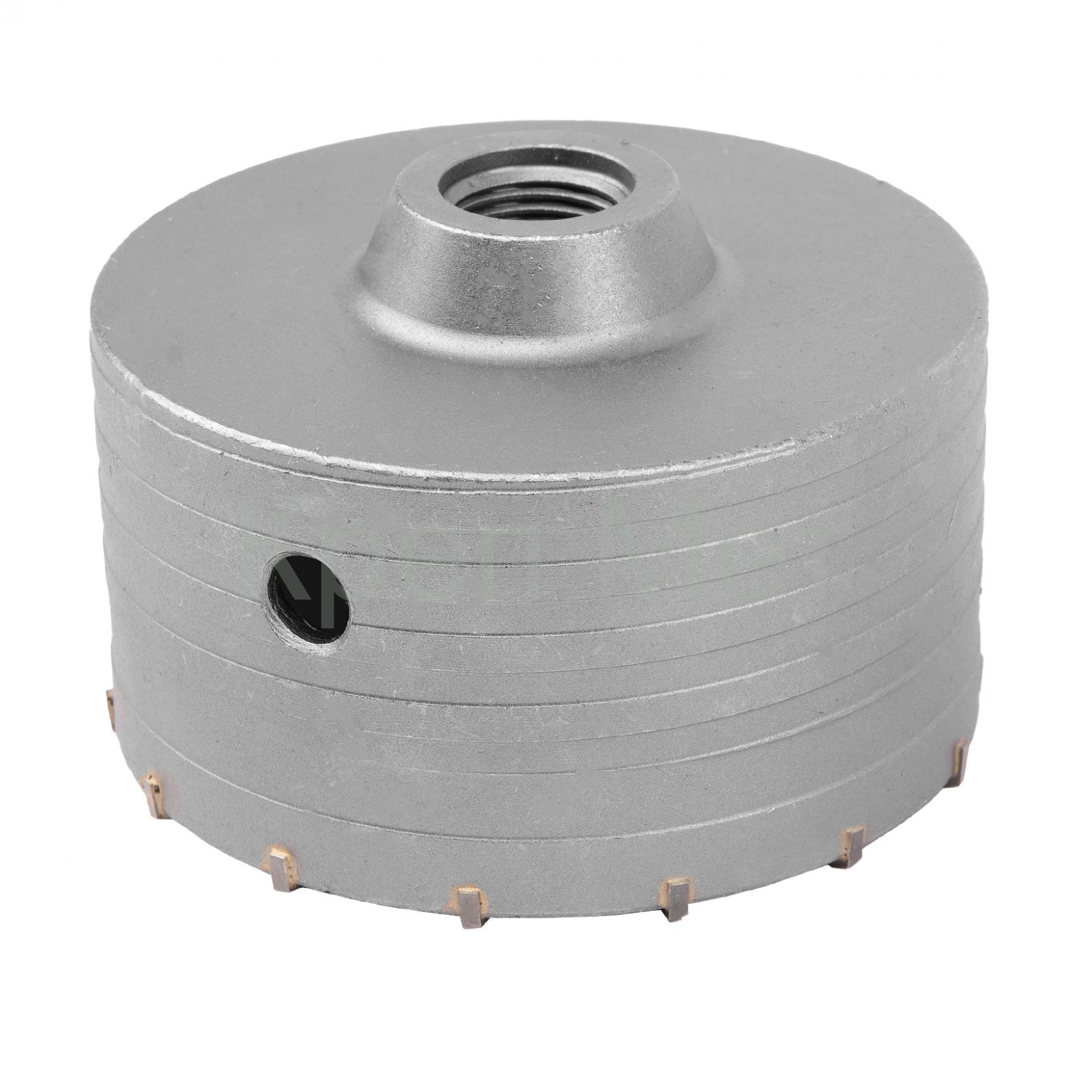 Буровая коронка Matrix 70391 с посадкой M22, диаметром 110 мм, рассчитана на сверление отверстий в бетоне, кирпиче, граните, природном и искусственном камне. Устанавливается на ударные дрели или перфораторы с патронами под хвостовик SDS-Plus или SDS-Max. Коронка позволяет получить большие отверстия, поэтому пригодится для монтажа розеток, выключателей и прокладки труб.