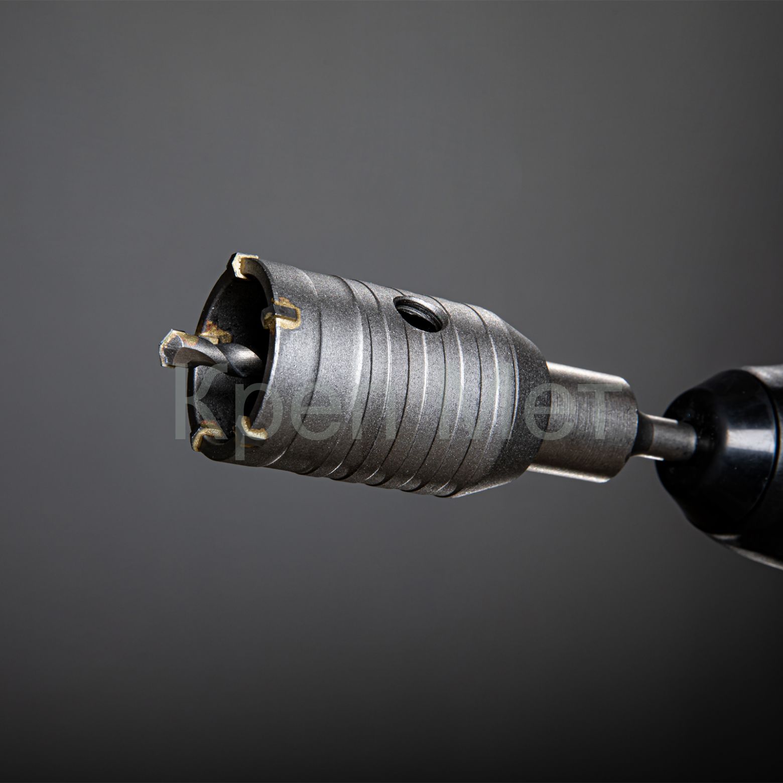 - Эффективность — спиральная канавка на корпусе обеспечивает улучшенный отвод продуктов сверления, что снижает нагрузку на перфоратор и повышает скорость работы.