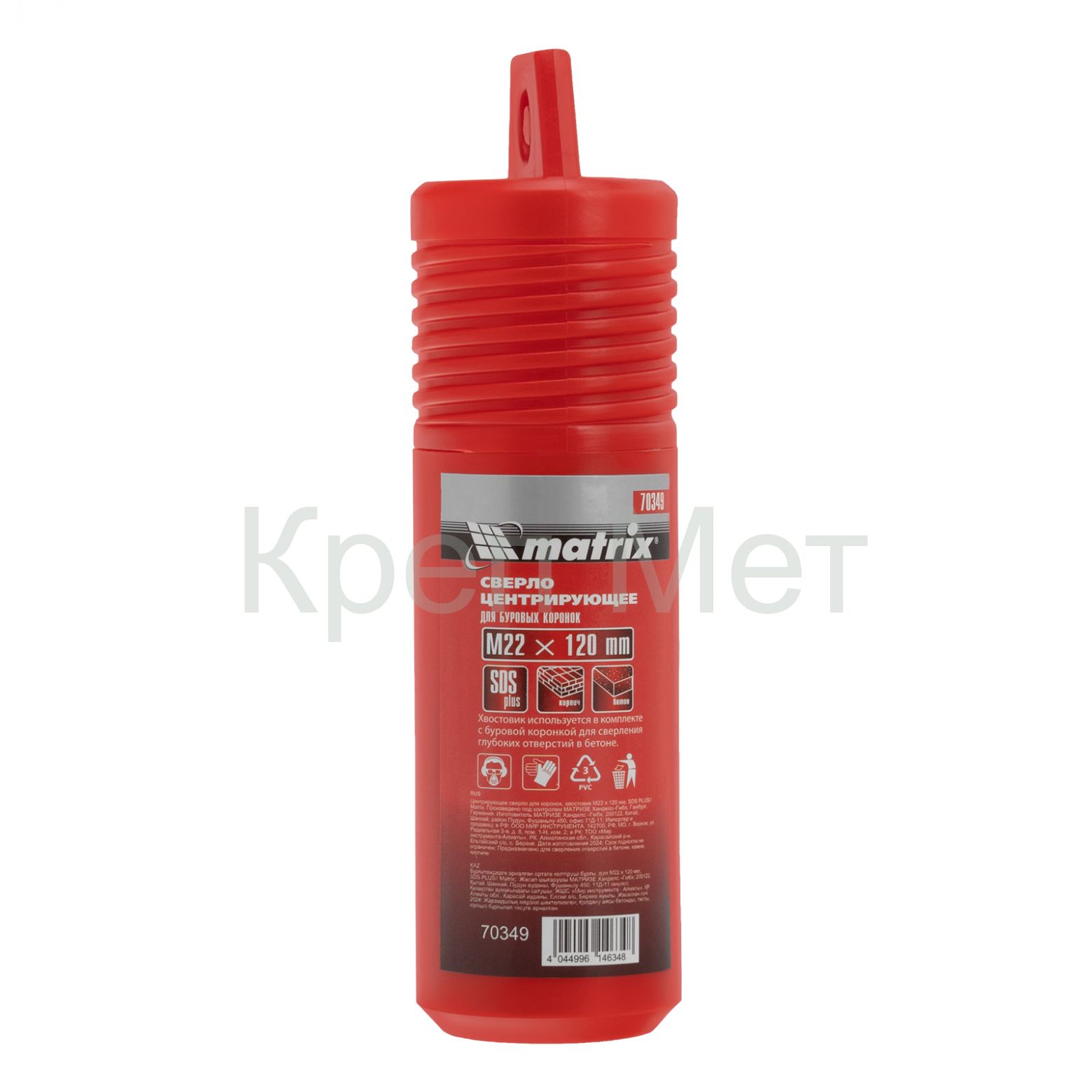 Центрирующее сверло для коронок Matrix 70349 с хвостовиком SDS PLUS длиной 120 мм, с посадкой М22, используется для получения отверстий в бетоне. Позволяет выполнять глубокое засверливание, предотвращает смещение коронки и повышает точность работы.