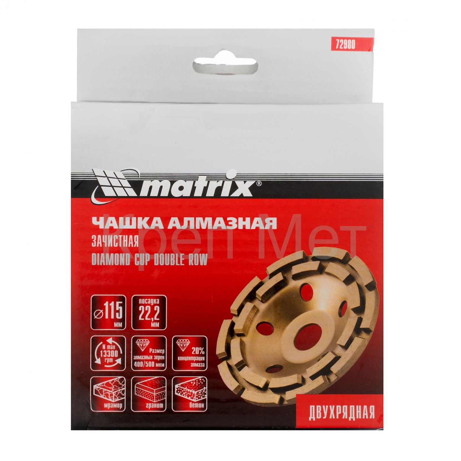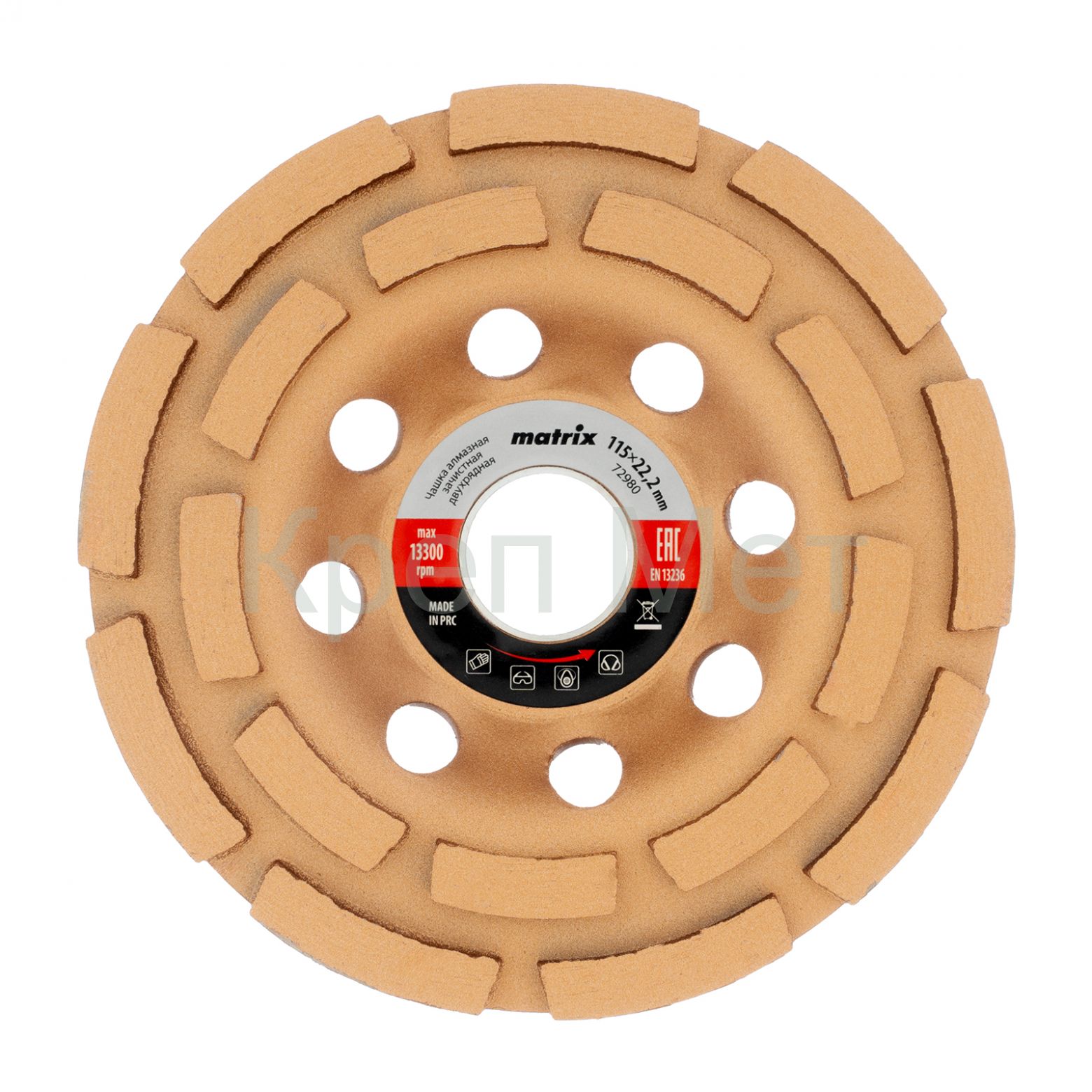 - Чашка алмазная зачистная, 115 мм, двухрядная Matrix