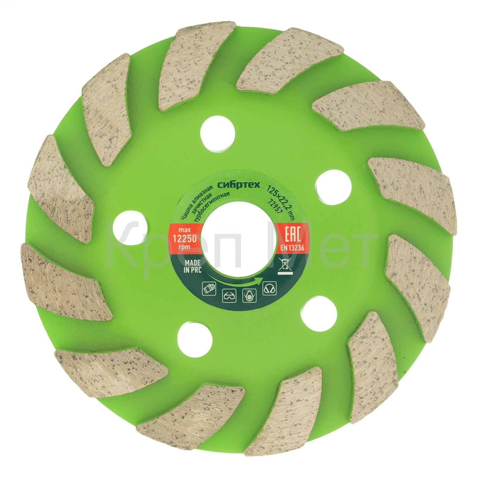 - Чашка алмазная зачистная 125 мм, турбо-сегментнаяная Сибртех