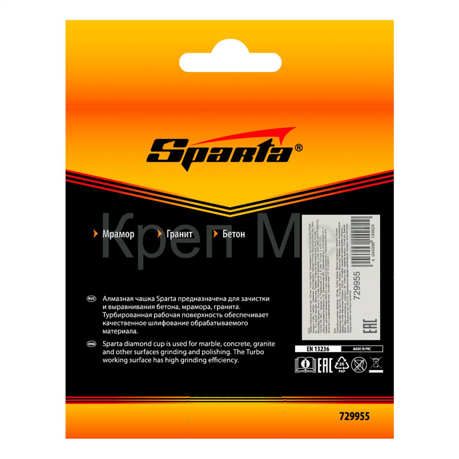 - Чашка алмазная зачистная, 125 мм, Turbo Sparta