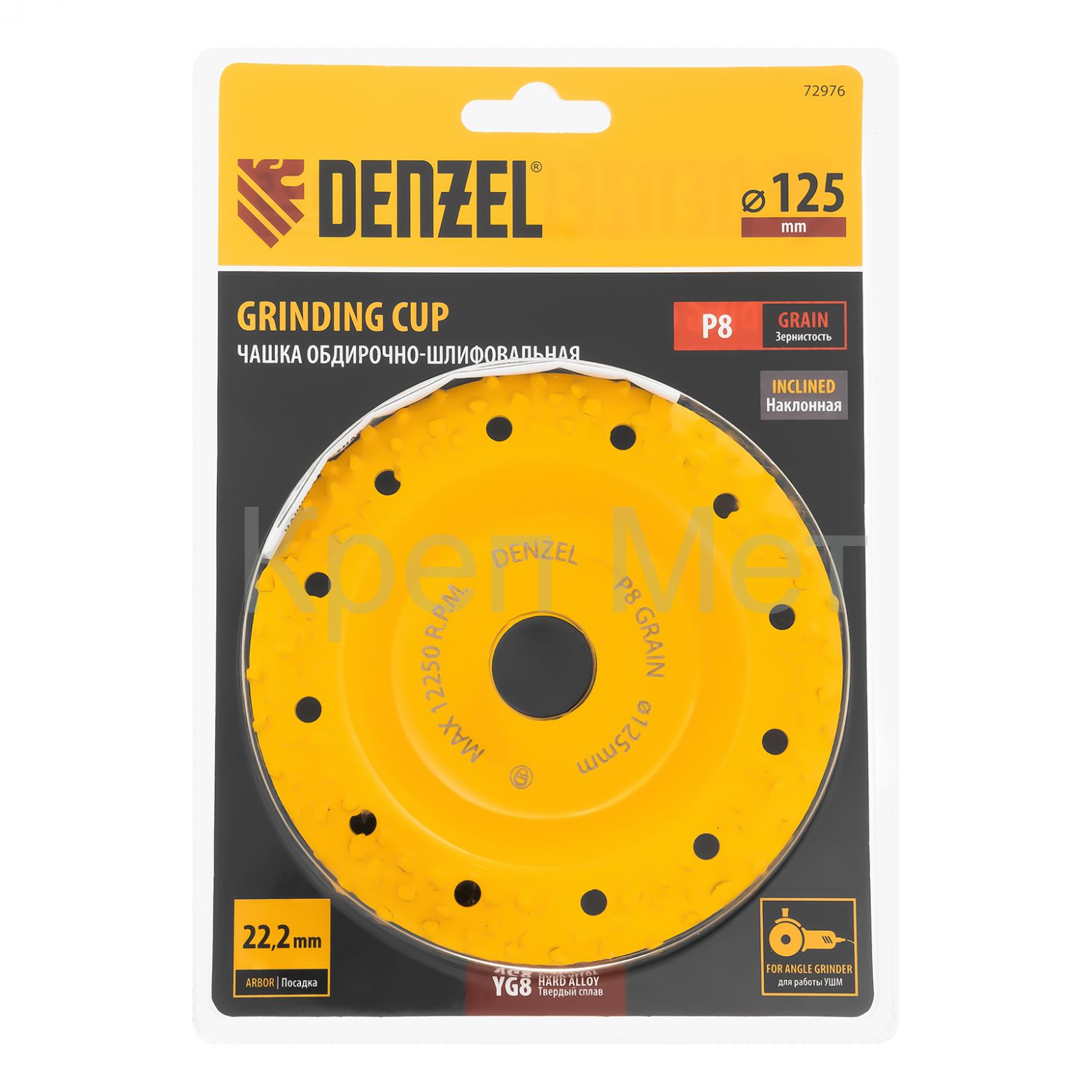 - Чашка твёрдосплавная зачистная,125 мм, Наклонная, крупное зерно #8 Denzel