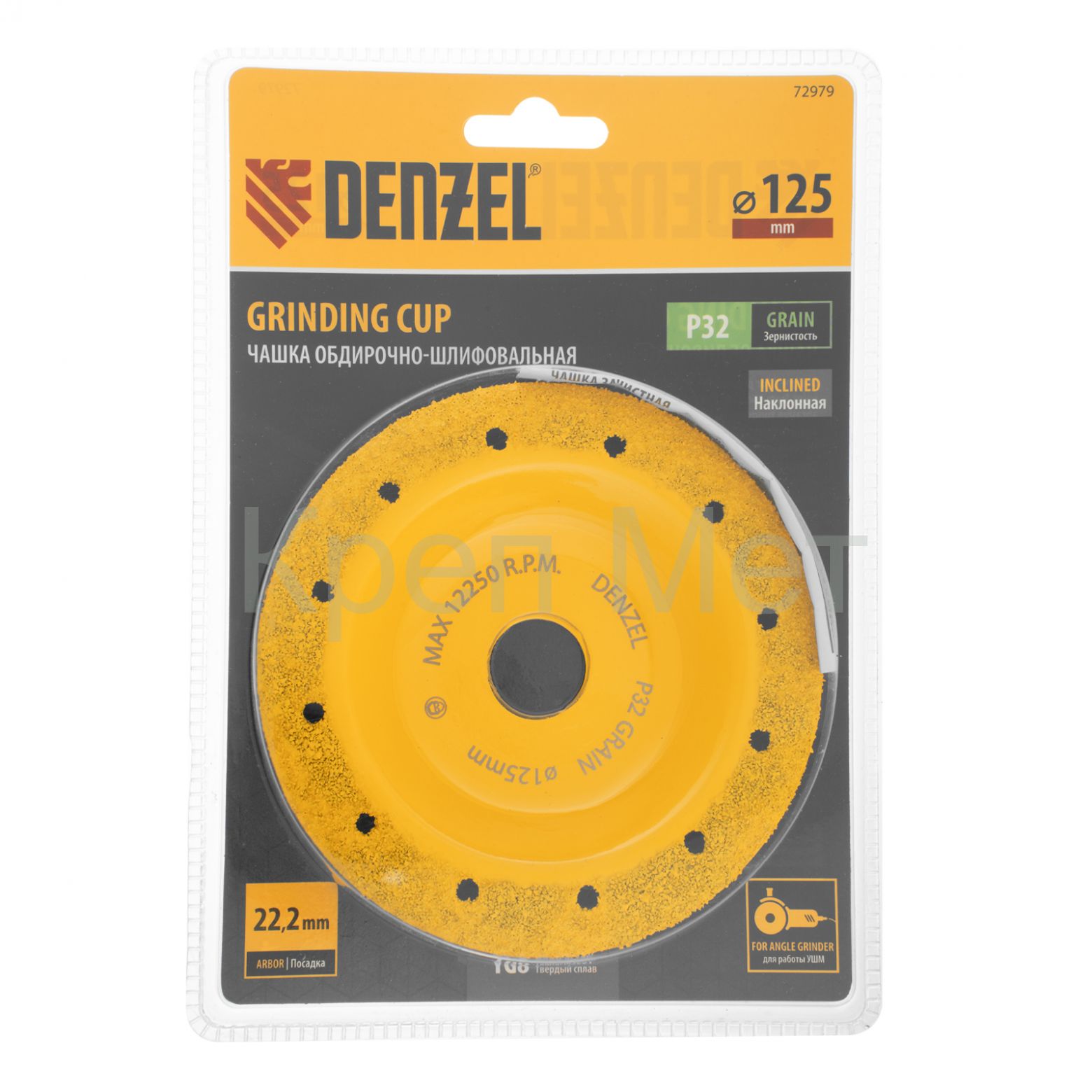 - Чашка твёрдосплавная зачистная,125 мм, Наклонная, мелкое зерно #32// Denzel