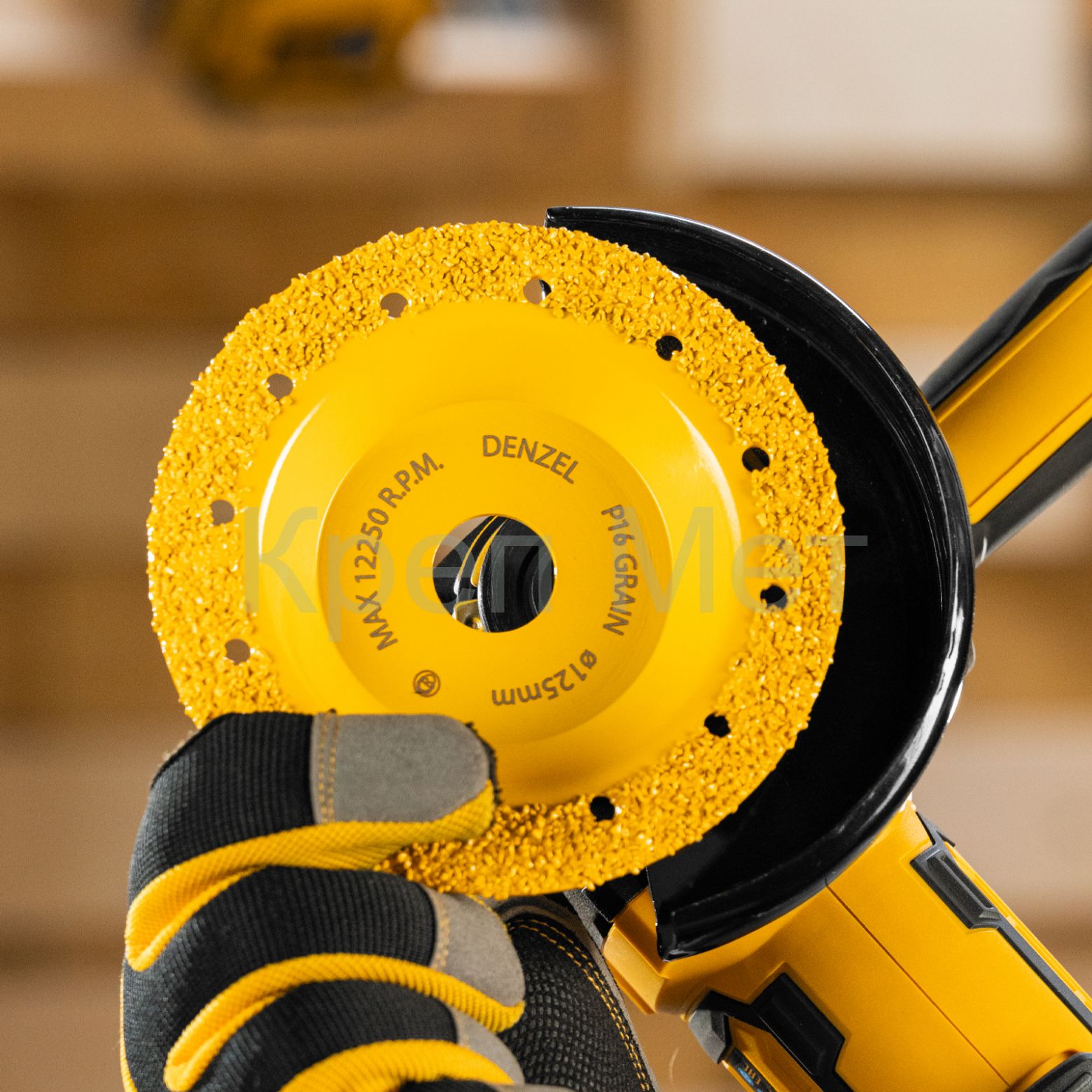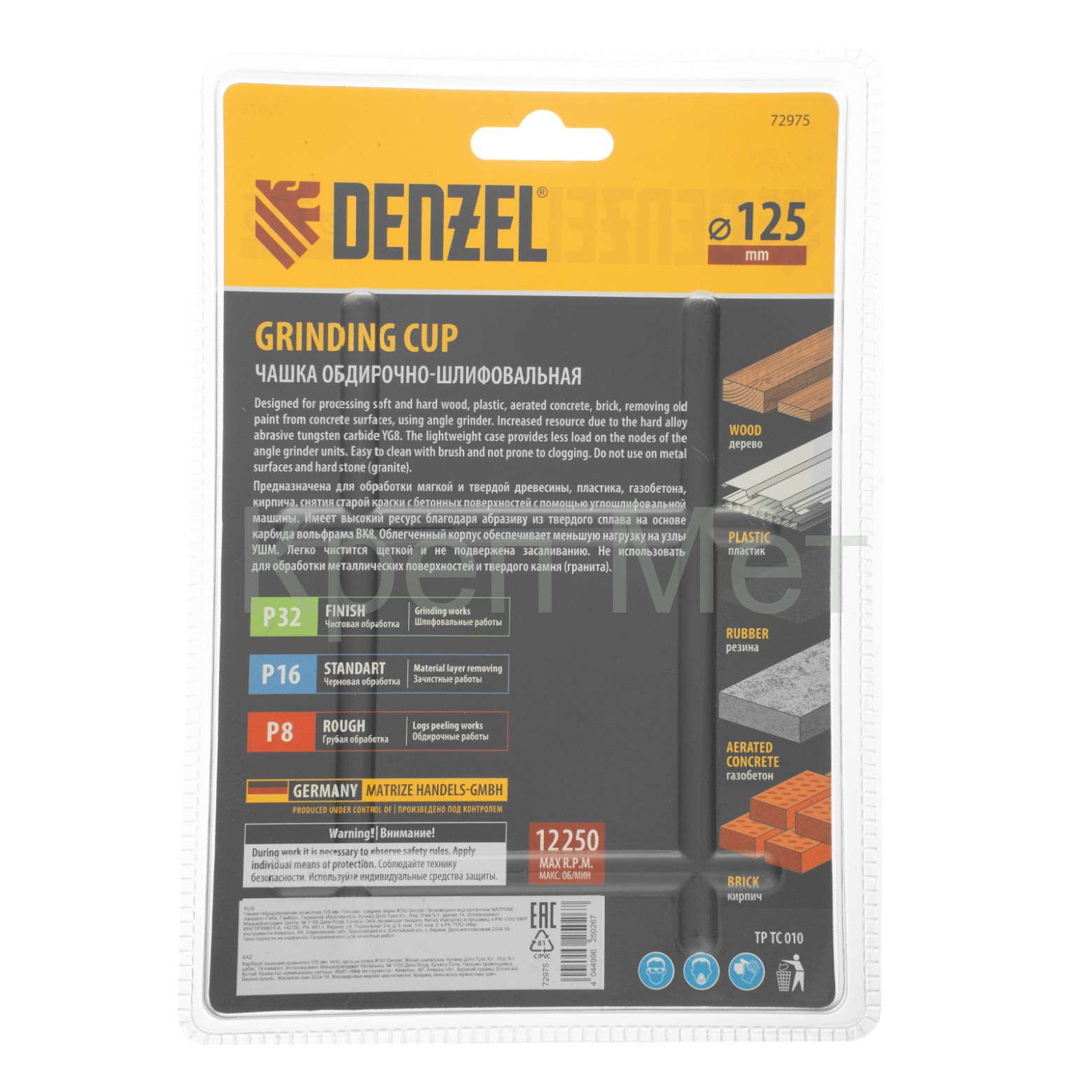 Твердосплавная зачистная чашка Denzel 72975 плоской формы, диаметром 125 мм, со средним абразивным зерном P16, — оснастка для углошлифовальной машины, предназначенная для проведения зачистных работ. Оптимальна для черновой обработки твердой и мягкой древесины, пластика, резины, газобетона, кирпича. Позволяет быстро и эффективно выровнять поверхность, удалить старое лакокрасочное покрытие, остатки клея, цемента и т.д. Не подходит для шлифования металла и твердого камня (гранита)! Благодаря облегченному корпусу чашки нагрузка на УШМ снижена, что продлевает срок службы инструмента.