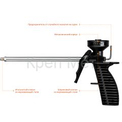 Применяется для нанесения полиуретановой пены, упакованной в баллоны, при выполнении монтажно-строительных работ.