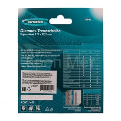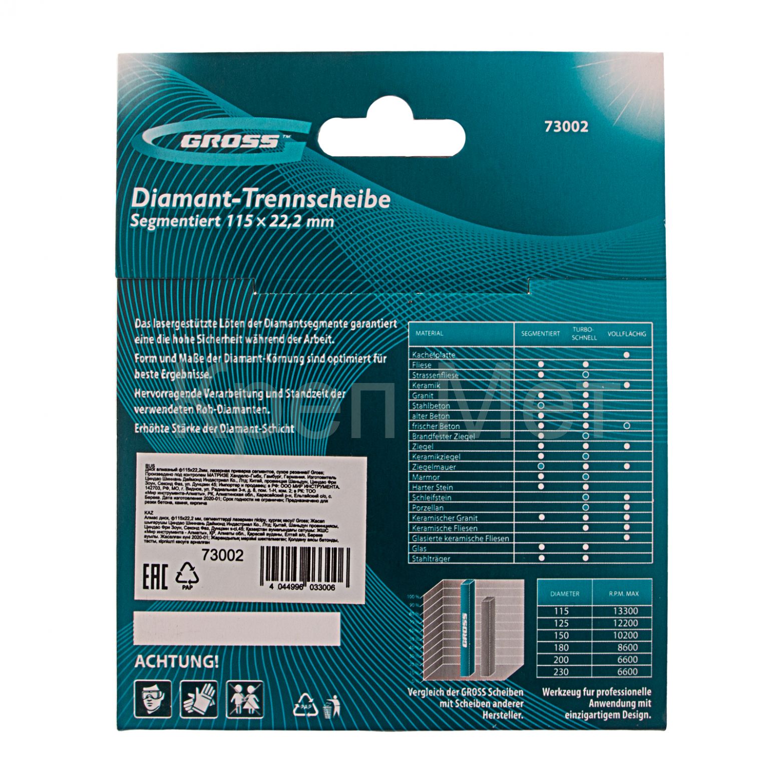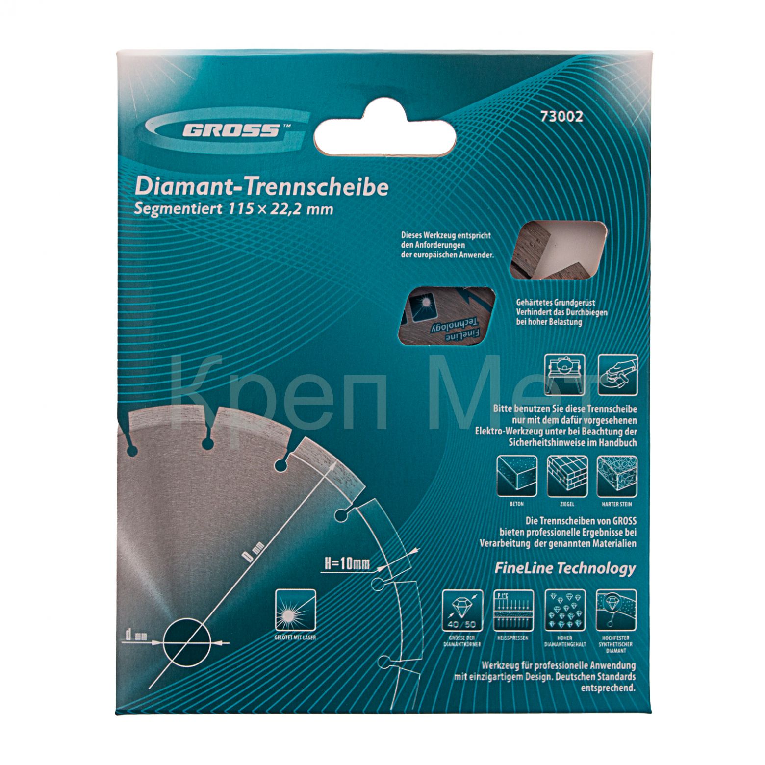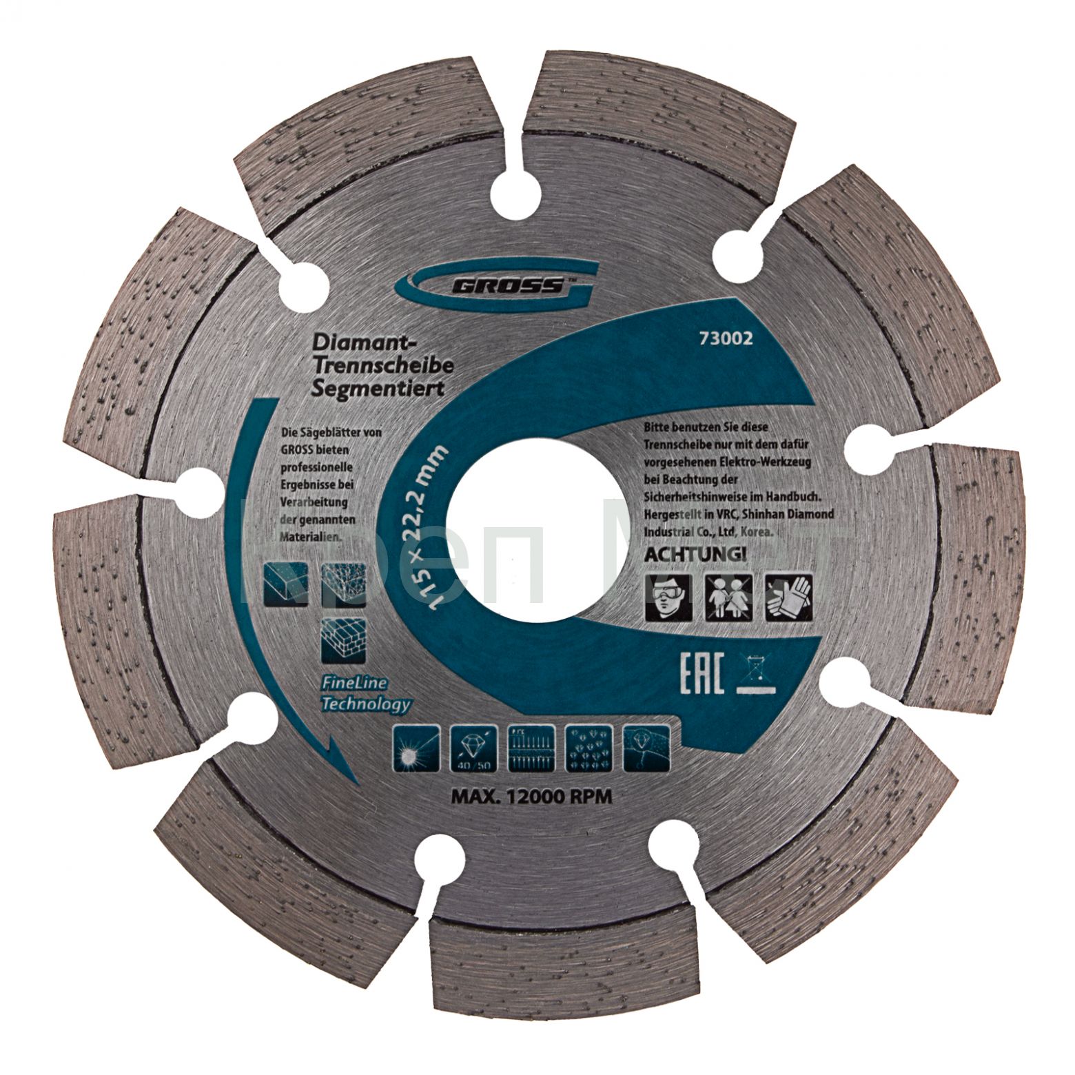 - Диск алмазный, 115 х 22.2 мм, лазерная приварка сегментов, сухая резка Gross