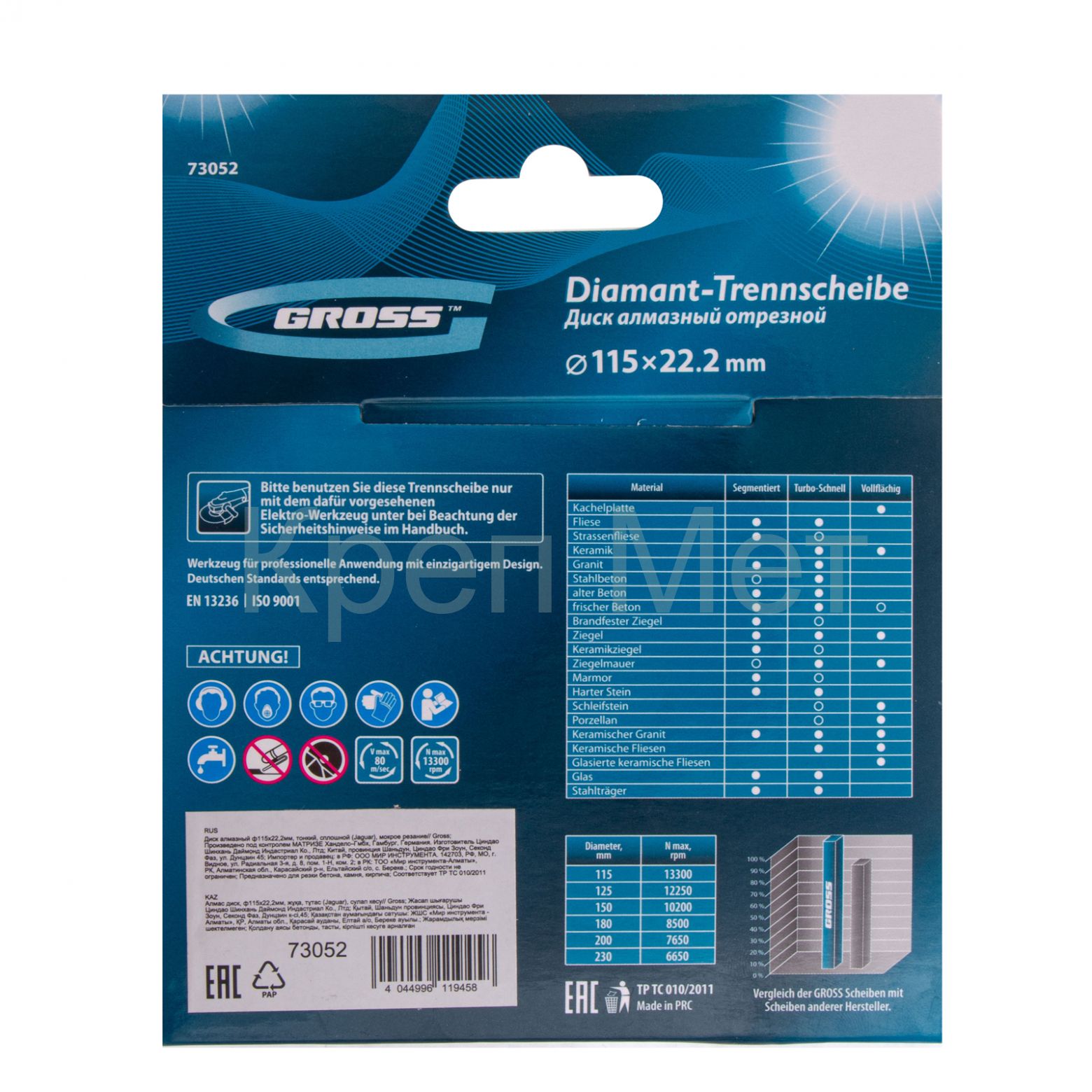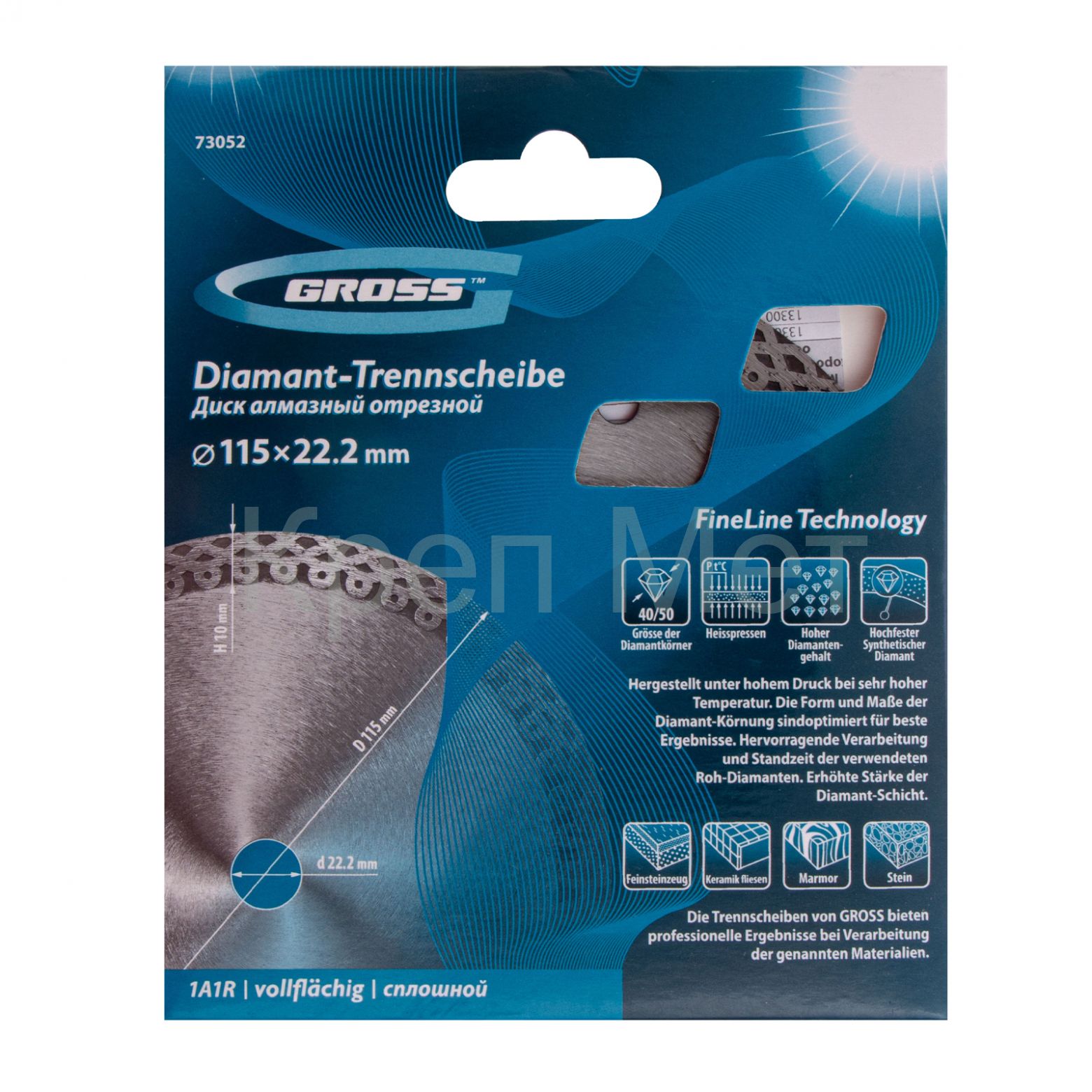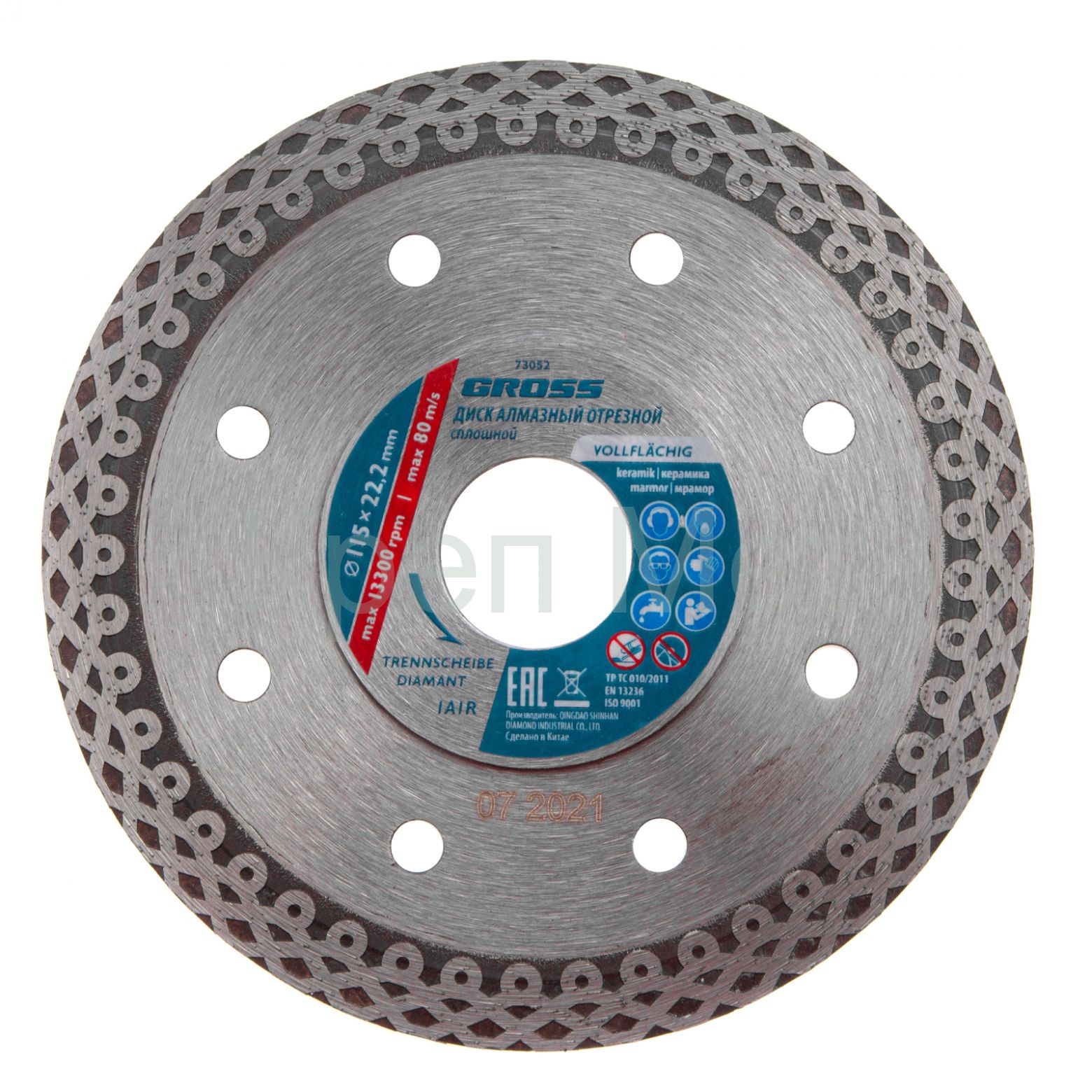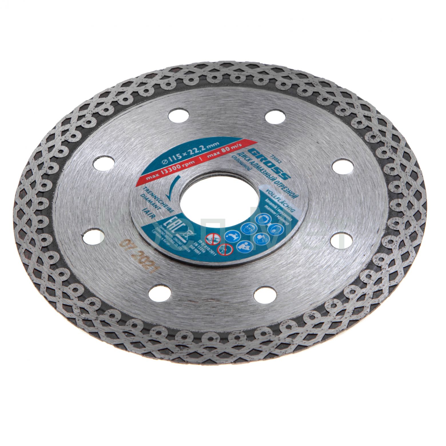 - Диск алмазный, 115 х 22.2 мм, тонкий, сплошной (Jaguar) мокрая резка Gross