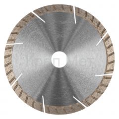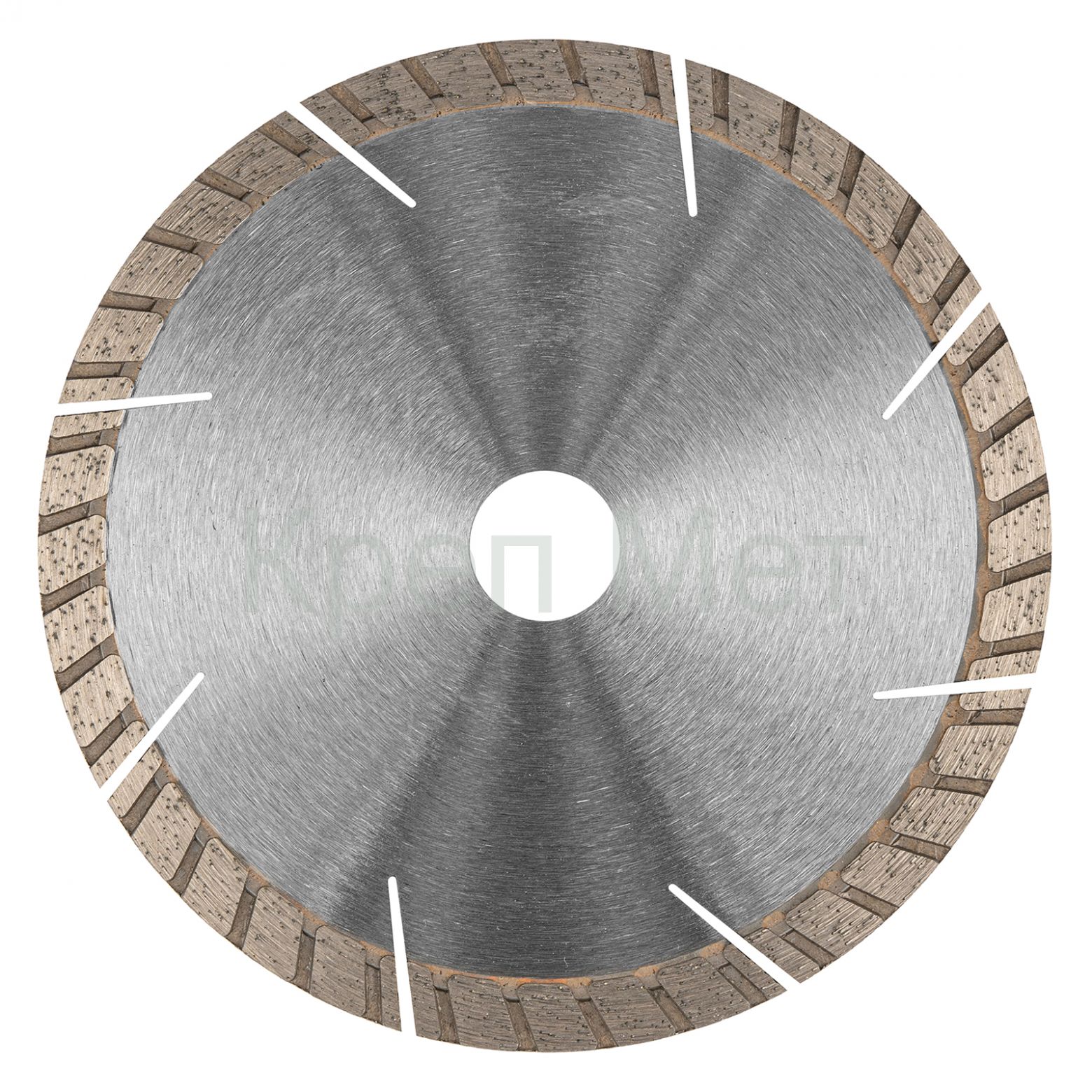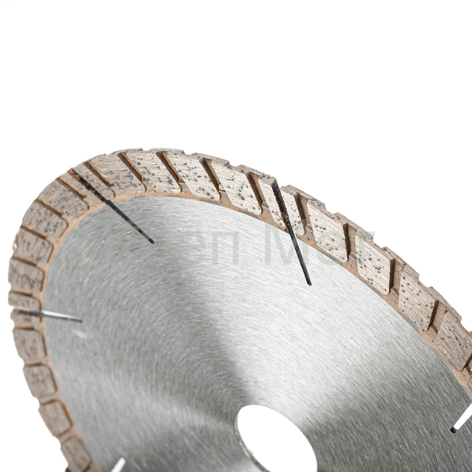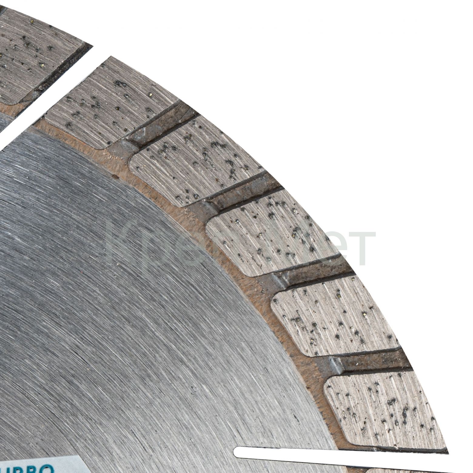 - Эффективная работа — благодаря турбо-сегментной форме диск быстро режет материалы, в т.ч. армированный бетон, водяное охлаждение не требуется.