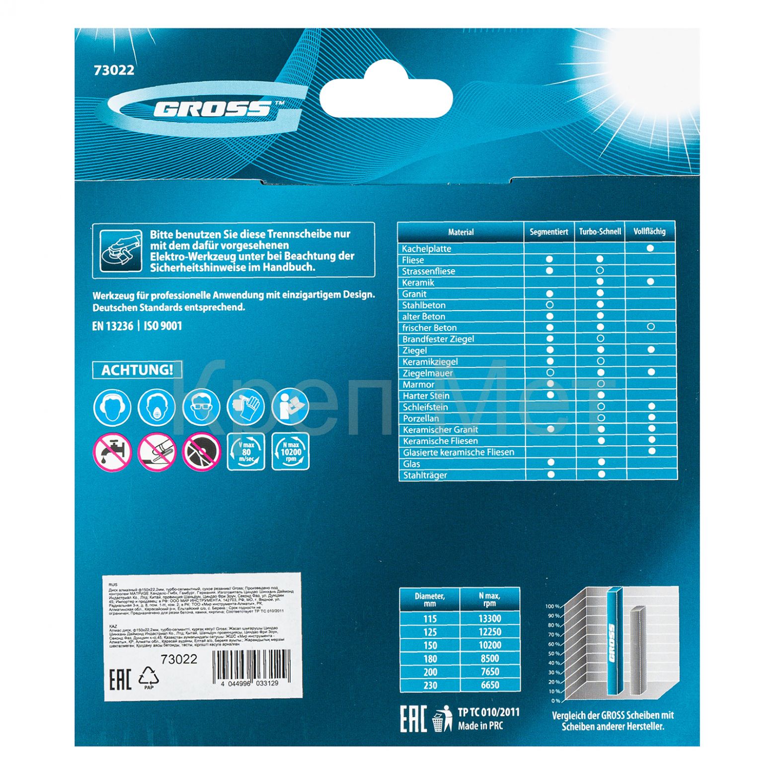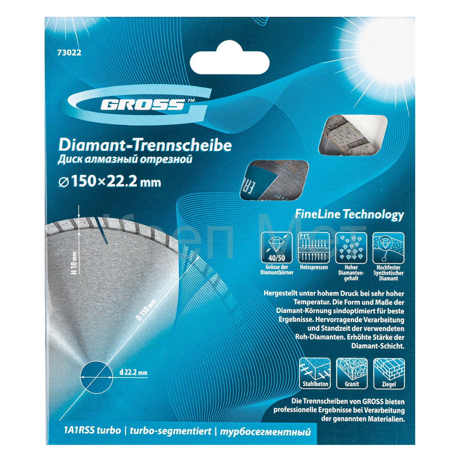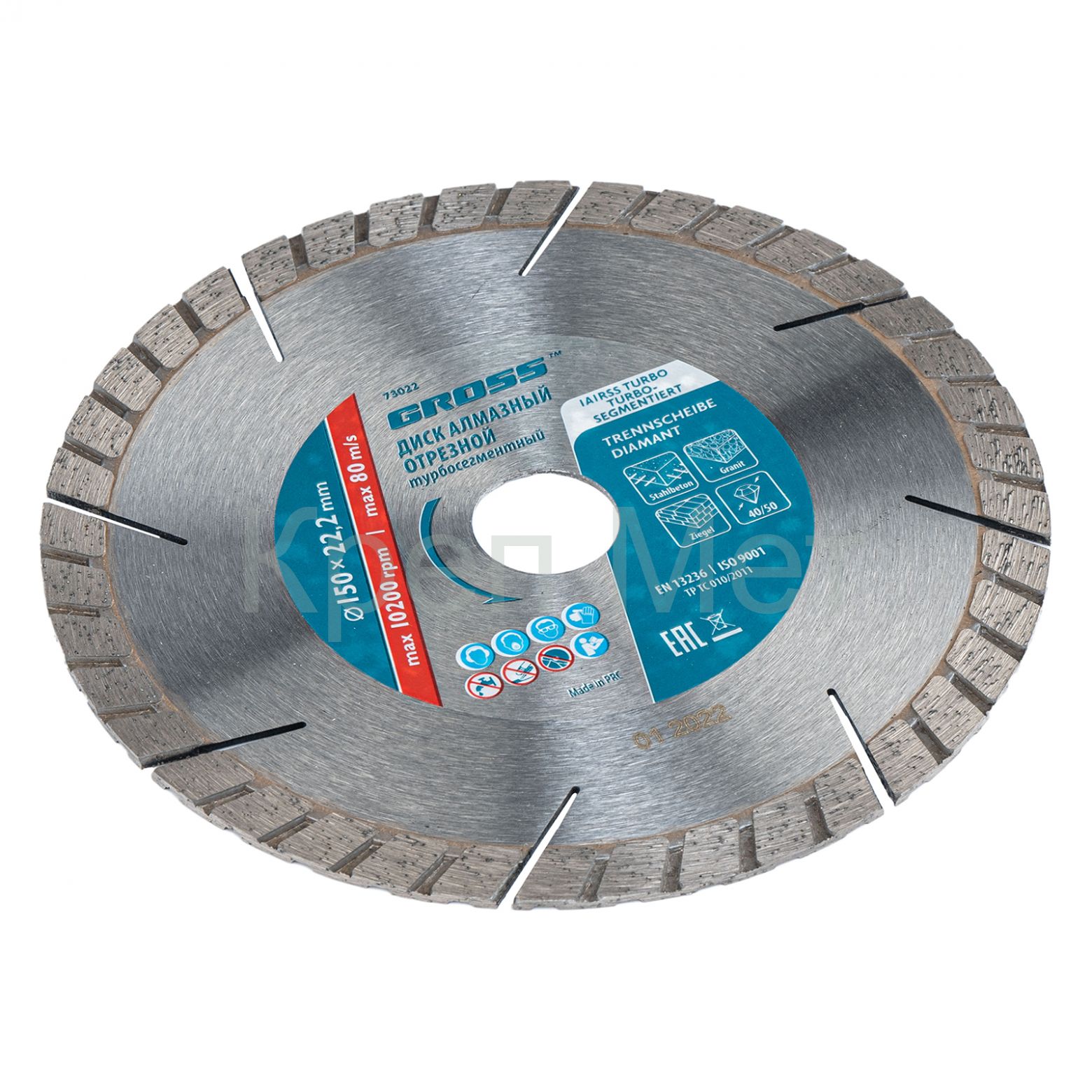 - Диск алмазный, 150 х 22.2 мм, турбо-сегментный, сухая резка Gross