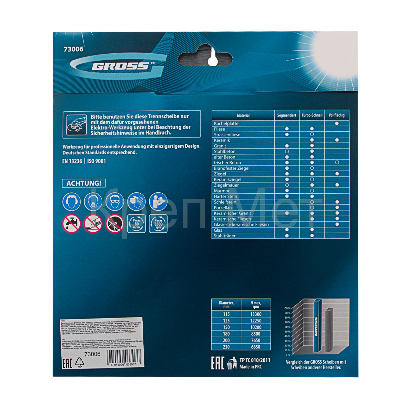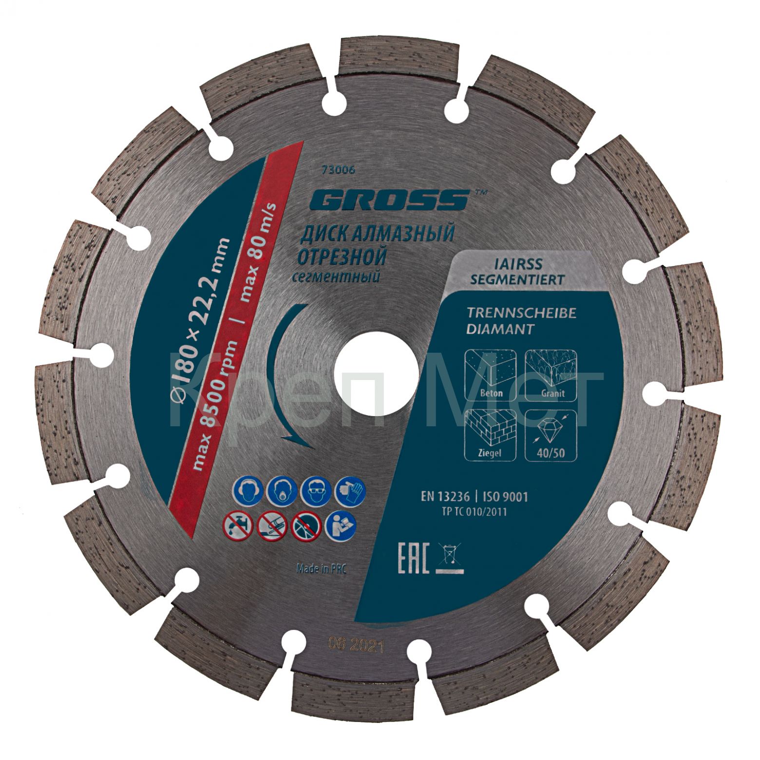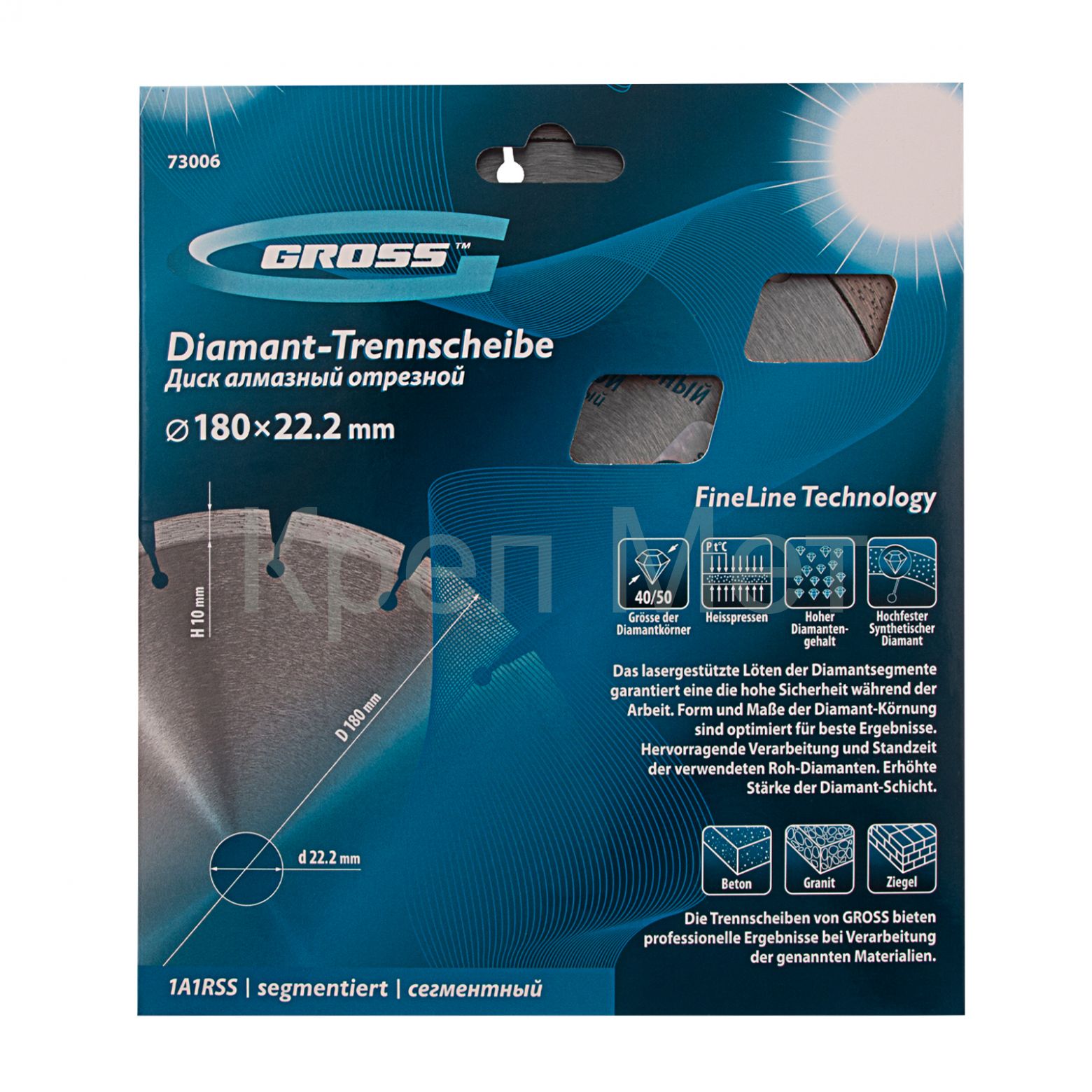 - Диск алмазный, 180 х 22.2 мм, лазерная приварка сегментов, сухая резка Gross